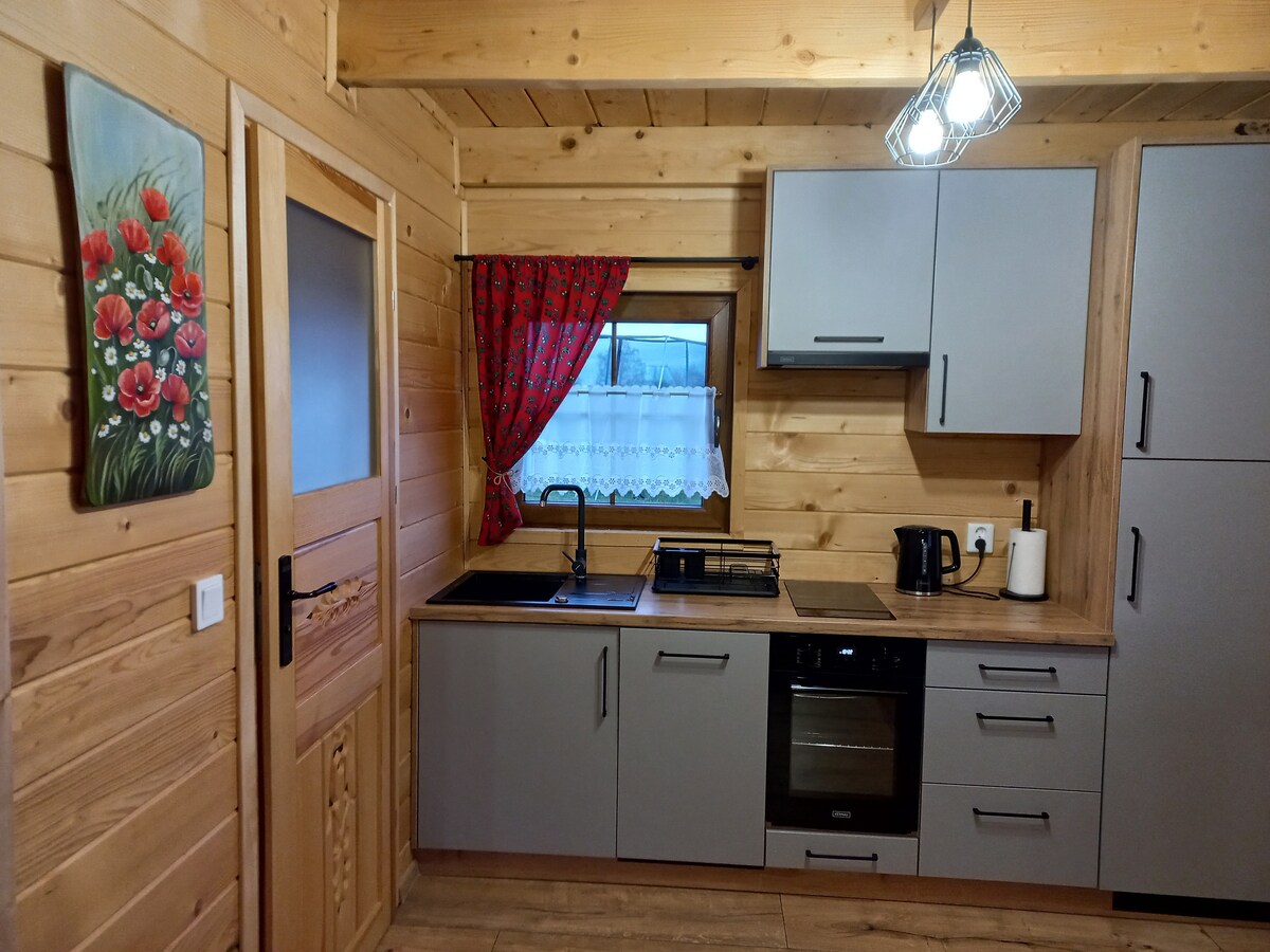 Ten malowniczy domek jest idealnym miejscem dla osób, które pragną spędzić relaksujący czas w otoczeniu przyrody i uciec od miejskiego zgiełku. Po przybyciu do domku od razu zauważysz piękne widoki . Okna w domku zapewniają doskonały widok na malownicze otoczenie, gdzie można podziwiać pełną zieleni scenerię. Jednym z największych atutów naszego domku jest jego bliskość do natury. Wystarczy zejść kilka kroków, by znaleźć się w lesie. Przyjazd z twoim zwierzakiem to nie problem . Teren ogrodzony.