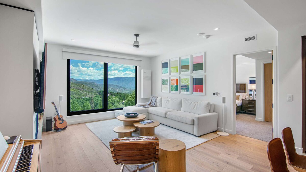 Descubre la experiencia de lujo más asequible de Aspen. Totalmente remodelado con ropa de cama nueva, sábanas, productos de baño de lujo y Prosecco frío. Suelos radiantes, aire acondicionado central, patio al aire libre, persianas eléctricas, televisores Samsung y Sony, lavadora/secadora, cocina totalmente equipada y baño moderno. Acogedor apartamento en el centro de Aspen con transporte gratuito para esquiadores a Aspen Mountain. Aparcamiento en garaje asequible al lado. Mejora tu estancia en una ubicación A+. Cada una de mis propiedades ofrece una experiencia elevada y obras de arte de artistas locales consumados.