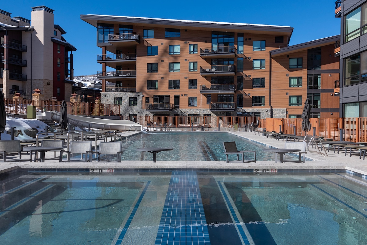 🌲Estudio: cama tamaño king, vistas a la montaña, chimenea elegante, TV inteligente, mesa de comedor para dos 🌲Baño amplio, ducha al ras del suelo 🌲¡Se admiten mascotas! 🌲Cocina pequeña totalmente equipada Servicios 🌲del centro vacacional de última generación: piscina, jacuzzi, spa, gimnasio, restaurantes, servicio a la habitación y más 🌲¡Alquiler de esquí en el lugar, acceso a pases de esquí, almacenamiento de esquí! 🌲Verdadero acceso a las pistas de esquí 🌲¡Accesible según la ADA! A 🌲<5 minutos a pie del pueblo y de la estación de autobuses.