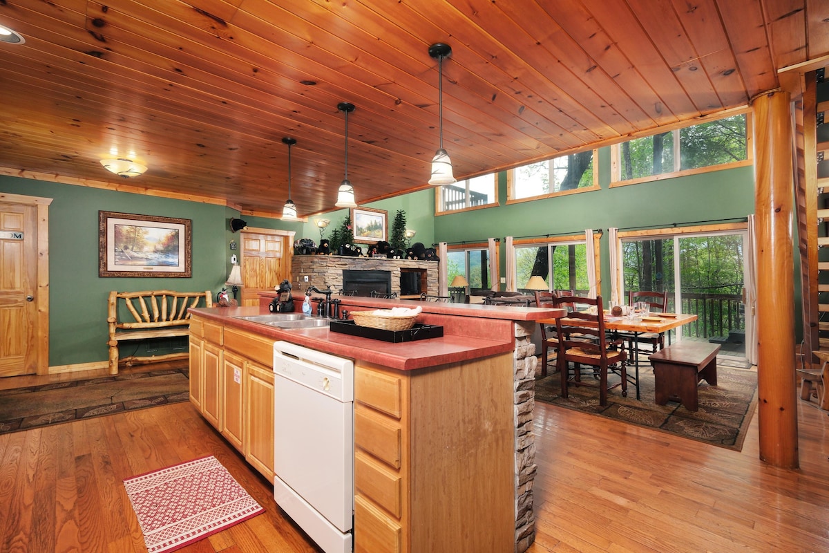 Disfruta de increíbles vistas a la montaña en "Bears Repeating". Sumérgete en la bañera de hidromasaje privada en esta acogedora y espaciosa cabaña de vacaciones, 2 dormitorios/2 baños. ¡Ideal para familias (capacidad para 6 personas) y perfecto para lunas de miel también! (Edad mínima de alquiler de 25 años). Los techos altos con paneles de madera y las ventanas del piso al techo llenan el espacio de luz. ¡Relájate junto a la chimenea de gas revestida de piedra o dirígete al loft para jugar! TRES piscinas comunitarias disponibles Mem. ¡Día a través del Día del Trabajo! ¡Fácil acceso a Gburg, Dollywood, PForge y mucho más!