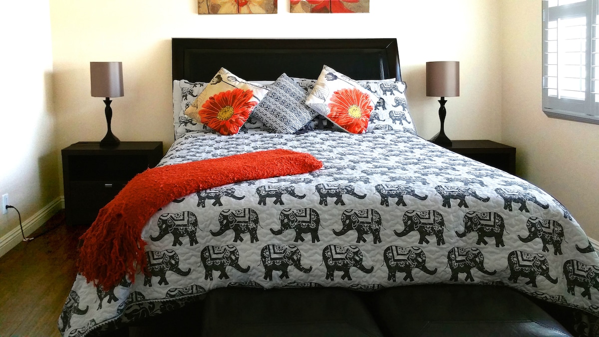 Relájate en este acogedor espacio separado de la casa principal para una pareja o hasta 4 personas. Esta es una suite privada de un dormitorio con entrada privada y cerradura con teclado. Disfruta de la zona del patio y del gimnasio. Situado en un barrio tranquilo y silencioso, a poca distancia a pie de un parque. Cerca de las autopistas 5, 105, 605 y 91, a solo 25 minutos de Disneyland, a 40 minutos de Universal Studios y a 20 minutos del centro de Long Beach y del aeropuerto de Long Beach.