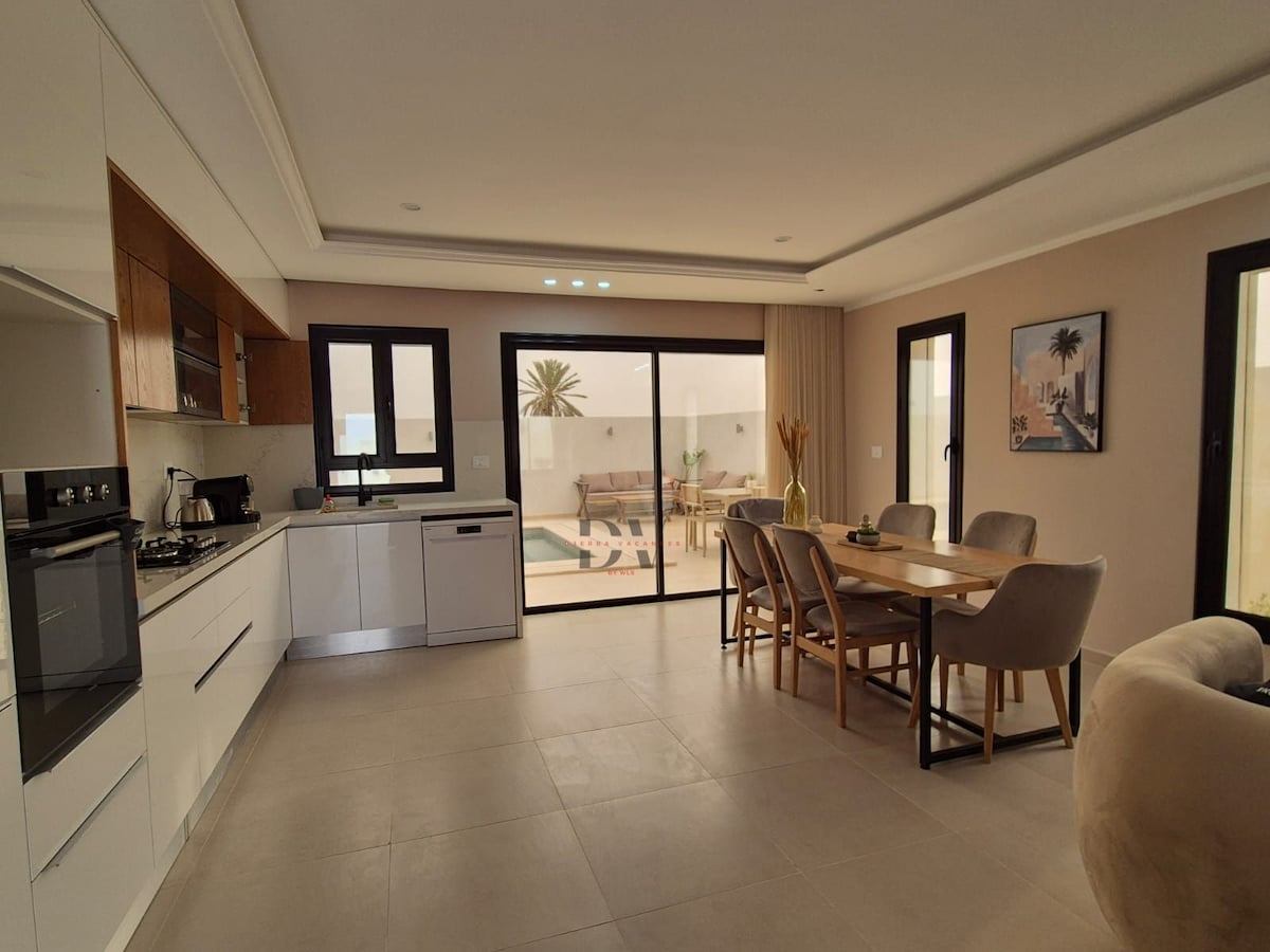 Lujosa villa ubicada en una urbanización elegante y segura, rodeada de olivos y palmeras centenarios. La villa está cerca de todas las comodidades: a 5 km del centro de Midoun, a pocos minutos de las playas más hermosas de la isla y cerca de actividades turísticas. Villa moderna en un nivel con líneas limpias, totalmente climatizada con una gran piscina. Distribución abierta al exterior con excelente luz. La calma, la serenidad y el bienestar.