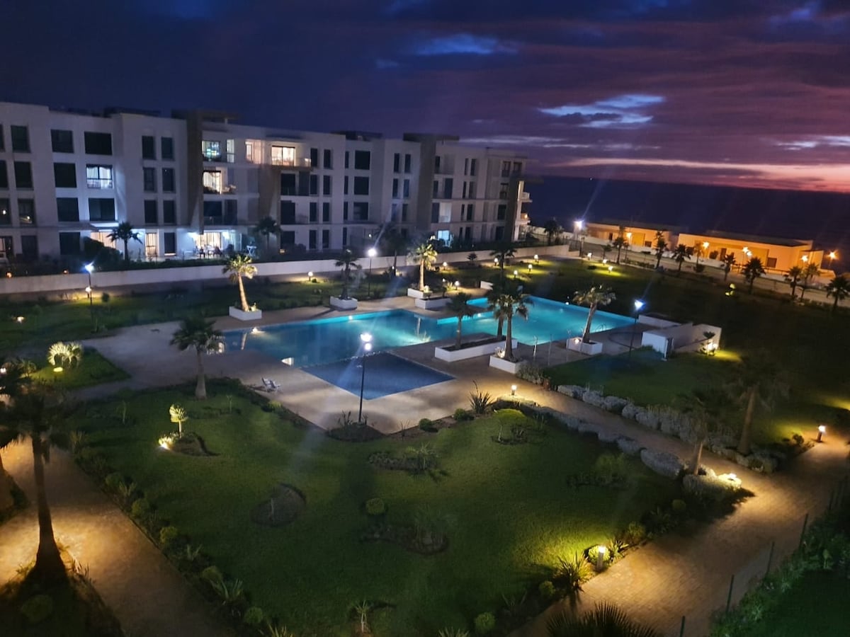 muy bonito apartamento en planta baja con una fachada con vistas al mar y otra fachada con vistas a la piscina y jardines. situado en un complejo residencial cerrado y seguro con plaza de aparcamiento indoor y al aire libre. tranquilo y silencioso. dos dormitorios con armarios empotrados y un gran salón con vistas al mar. terrazas agradables y jardines cuidados . la playa está etiquetada a 20 minutos de Rabat, ciudad turística, agradable donde se pueden admirar varios monumentos históricos como el Chellah, oudaya, tour Hassan, oued Bouregreg..
