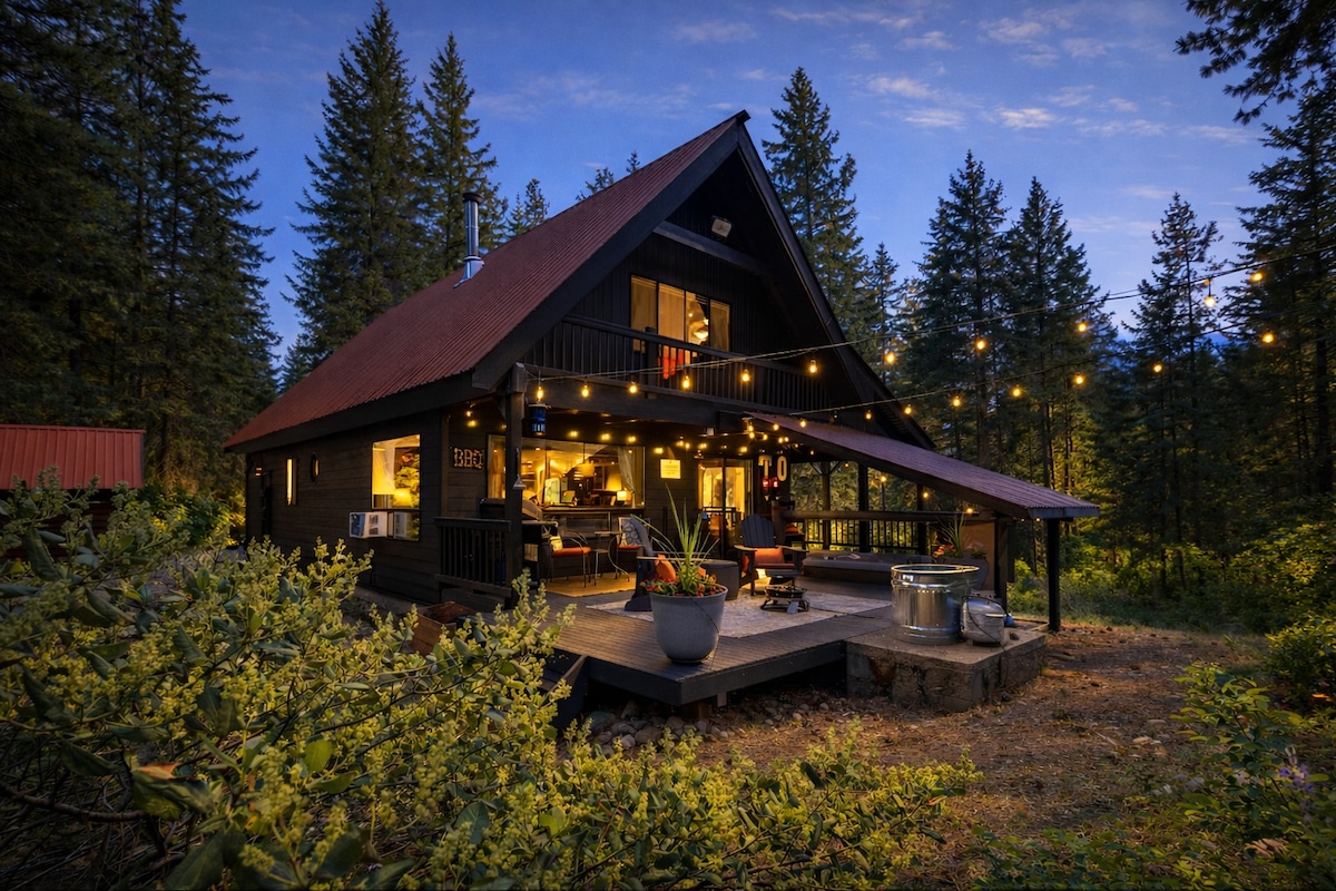 Escondido en 2.5 acres de aislamiento boscoso, el PNW Hideout combina comodidades modernas con la naturaleza. Camine 3 minutos hasta el hermoso río, conduzca 15 minutos hasta el lago Wenatchee o disfrute de todas las maravillosas actividades a solo minutos de distancia en Plain. Internet de fibra de alta velocidad hace que la cabina sea un paraíso de trabajo desde casa. Disfruta del espacioso patio asando malvaviscos alrededor de la chimenea, sumergiéndote en el jacuzzi o descansando en el interior con un fuego de leña. Ubicado a 20 millas del centro de Leavenworth. STR#000267