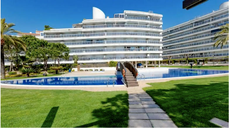 Gran apartamento de 110 m., junto al mar, en la misma playa, ,gran terraza y PARKING privado. Vistas espectaculares (comedor todo vidrieras) y 2 PISCINAS (horario 10 a 23,jun/sep) con zona ajardinada (muy cuidada), 3 habitaciones orientadas al mar y gran zona ajardinada. Dos baños completos con bañera. A 45 min. de Barcelona y 30 del aeropuerto de Girona. Muy bien equipado ,con aire acondicionado y calefacción. Jardines y parque infantil al lado de la finca.