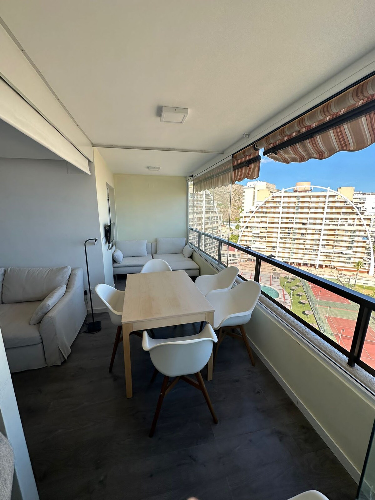 ¡Limpieza y desinfección con lejía, antes de tu llegada! Apartamento situado en el edificio FLORAZAR 5, a escasos 10 metros de la playa, con acceso directo desde el paseo marítimo🌊. Recién reformado, con una terraza con increíbles vistas panorámicas al Mediterráneo. Dispone de 3 habitaciones, todas ellas con terraza y muy luminosas, dos baños completos, WIFI, una increible piscina con vistas al mar, aparcamiento dentro del recinto, pádel, tenis, club social y parque para niños.