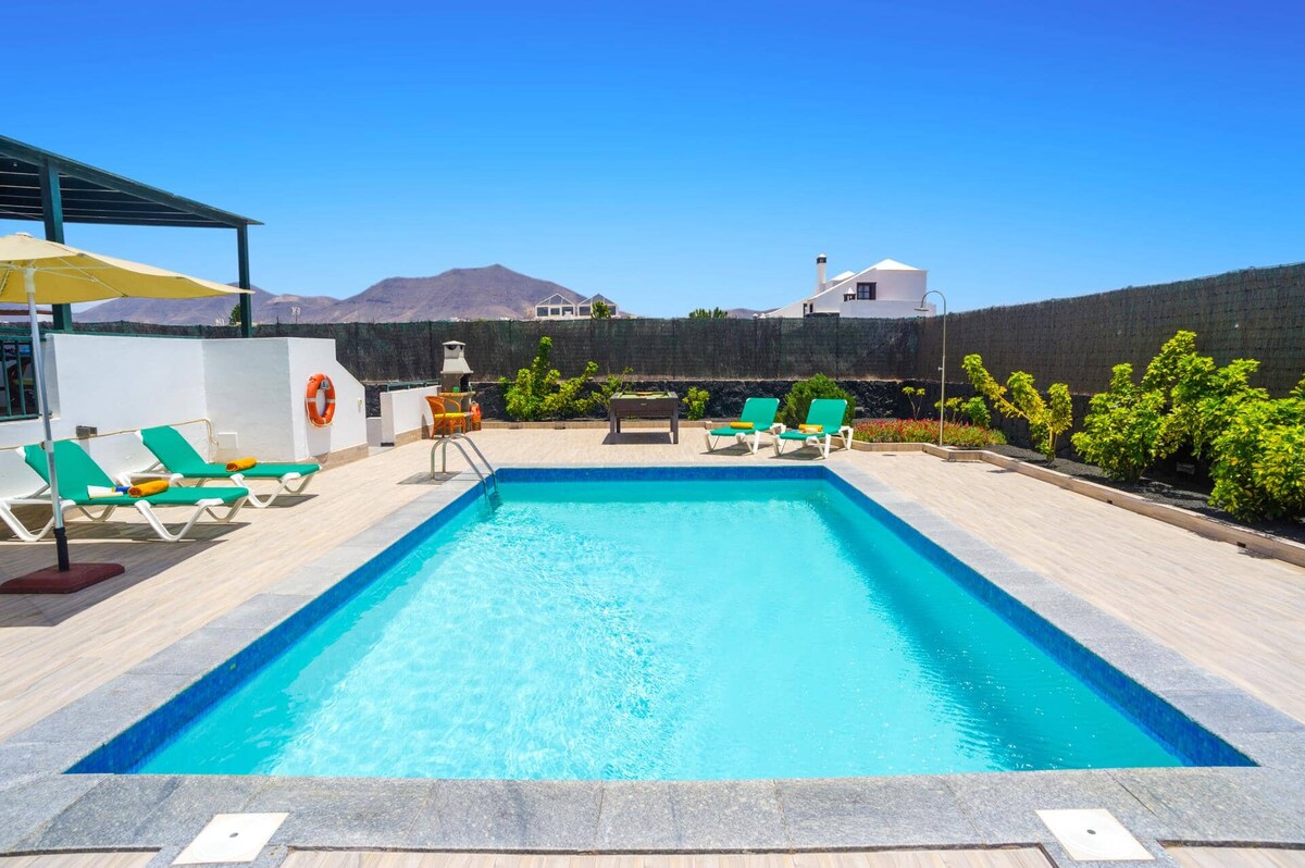Villa con piscina privada, situado en una tranquila y céntrica urbanización en Playa Blanca. La casa tiene una sola planta, tiene un amplio jardín ideal para disfrutar de la piscina y organizar barbacoas. Con dos acogedoras habitaciones y dos baños, además de una cocina completamente equipada con lavavajillas, horno y todos los utensilios. La piscina está climatizada, la temperatura estará fijada en 22 grados y si desea elevar la temperatura hasta 26 grados, el servicio tendrá un coste extra.