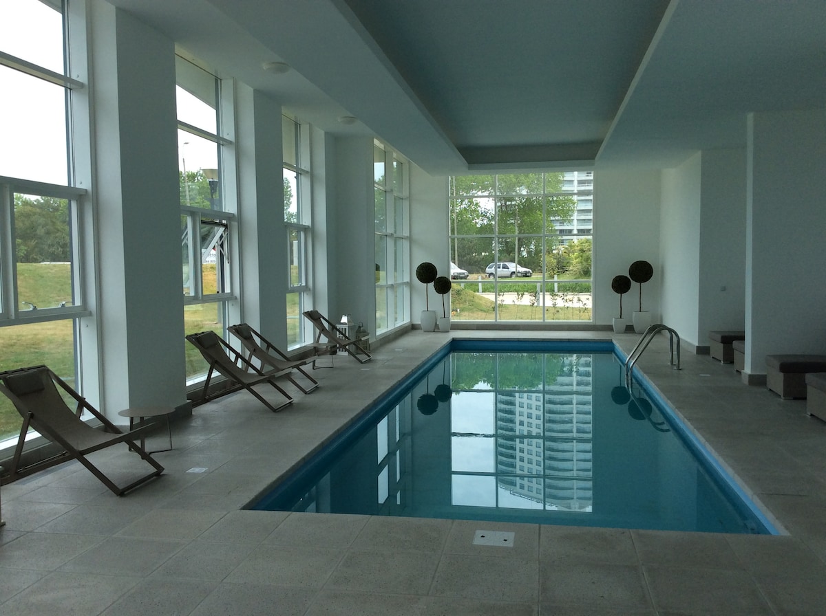 Monoambiente amplio, equipado, a estrenar. Wifi incluido, aire acondicionado Excelente ubicacion, frente al shopping, a cinco cuadras de la playa brava. PIDO LLEVAR SÁBANA Y TOALLAS. Los amenities del edificio: - Porteria 24 hs - Piscina abierta y cerrada climatizadas. - Spa, gimnasio completo, sauna. - Barbacoas con todo lo necesario. - Paseo comercial. - cine 3D. - Lavadero - Servicio de mucama - traslado a playa, reposera y sombrilla . Mi alojamiento es bueno para parejas