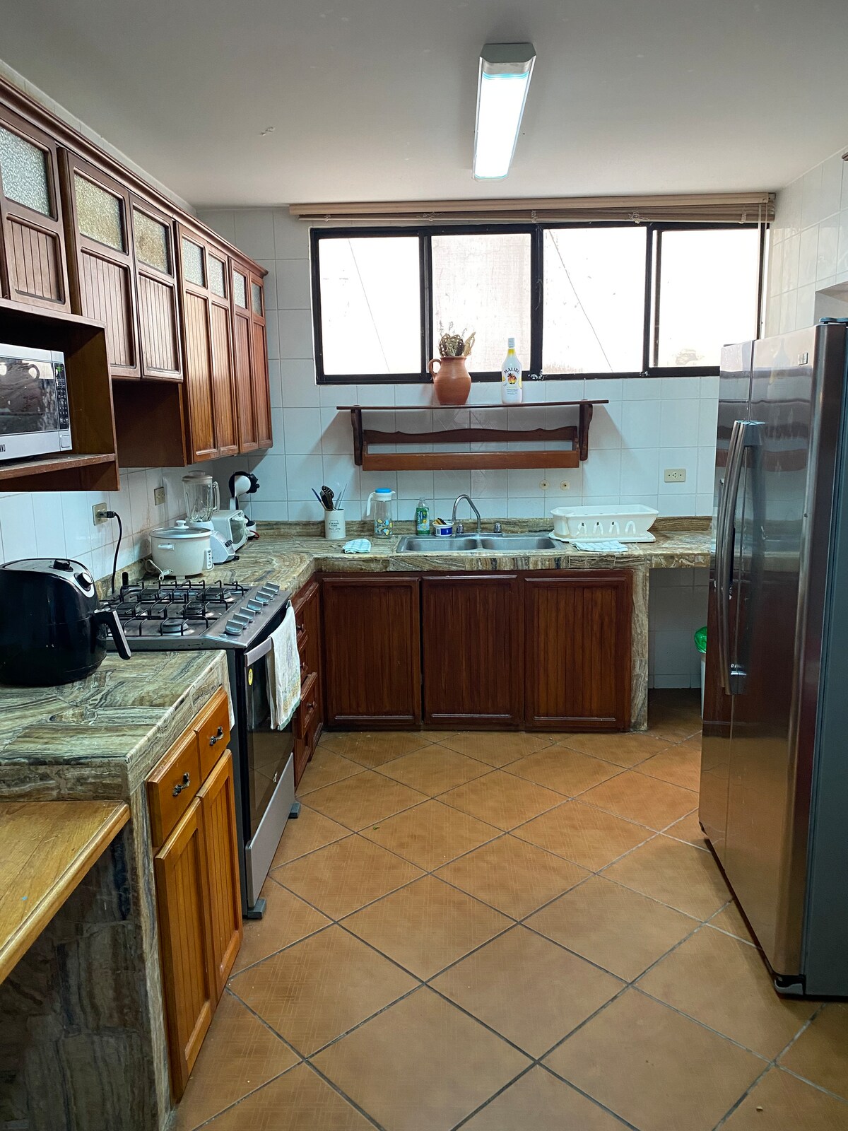 Tu familia y amigos estarán cerca de todo cuando te quedes en este alojamiento céntrico, ubicado a 5 minutos de la playa (en carro), a 5 minutos del megamaxi. Cómodo para todas las personas, cuenta con 4 cuartos, 3 baños, parrilla, garaje amplio y un acogedor porche con hamacas.