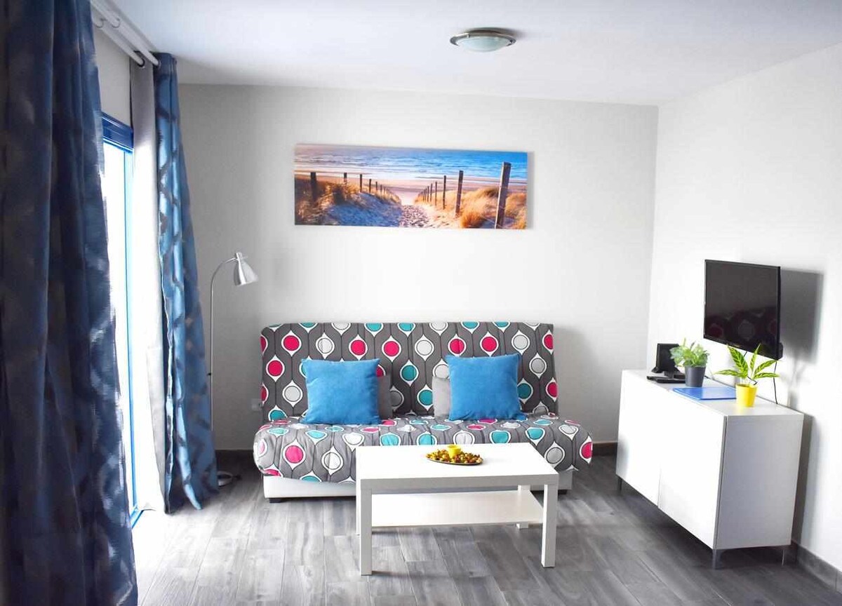 Apart. nuevo, luminoso, vistas al mar, en una de las mejores zonas de Puerto del Carmen. La terraza es fantástica para desayunar o cenar viendo el mar y la piscina. Aire acondicionado, Wiffi, caja de seguridad, lavavajillas, lavadora, nevera, Satélite TV English, German, French and Spanish, cama grande 150*190, piscina de adultos+infantil, parque infantil. A 10 min andando a la playa y al puerto de la Tiñosa. Para sentirse en como en su propia casa. Disponible cuna para bebes con un coste 10€