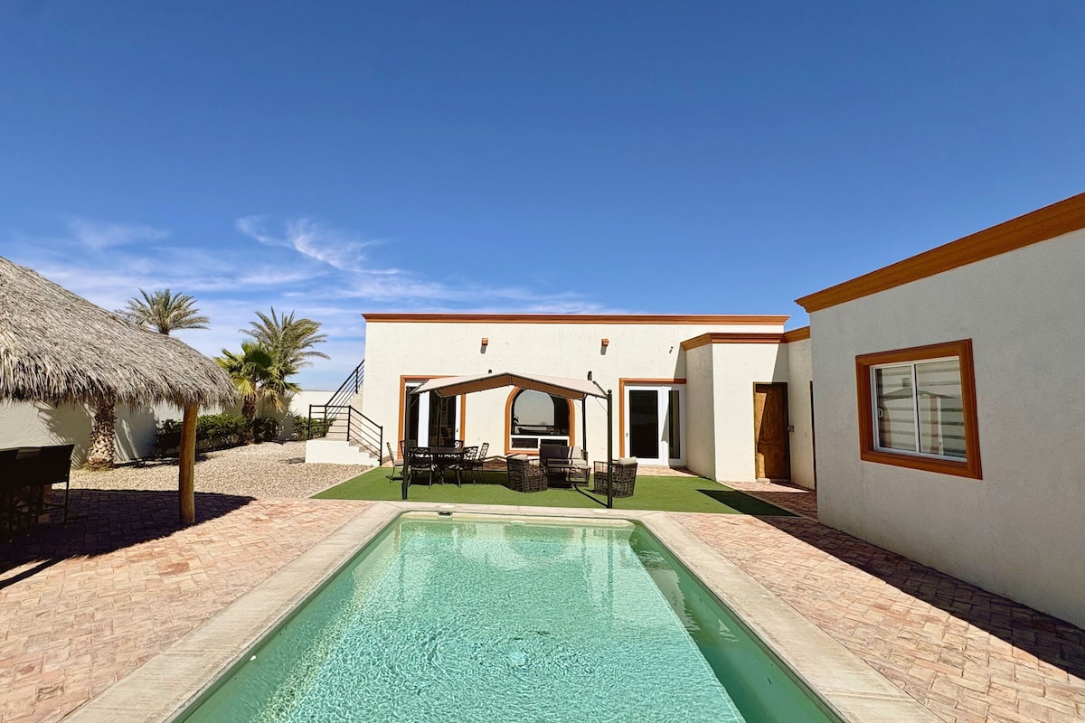 ¿NECESITA sol🌞, arena⛱️, mar 🌊 y un 10 % de descuento❓ Casita espaciosa. PLAYA LAS CONCHAS justo enfrente *Sin rocas ni multitudes. *Splash, Kayak, Chill*Patrulla tranquila de lujo 24/7 *Lejos de la zona turística ocupada pero a minutos de restaurantes y vida nocturna *Casita SUNSET a través de un pasillo sereno desde SUNRISE *Ambos ofrecen vistas al mar y al desierto *Cocina totalmente equipada *Diseño arquitectónico verdaderamente único con mucha luz natural *¡Todas las comodidades y servicios combinados con un estilo mexicano rústico hacen que tu estancia sea relajante, memorable y divertida!