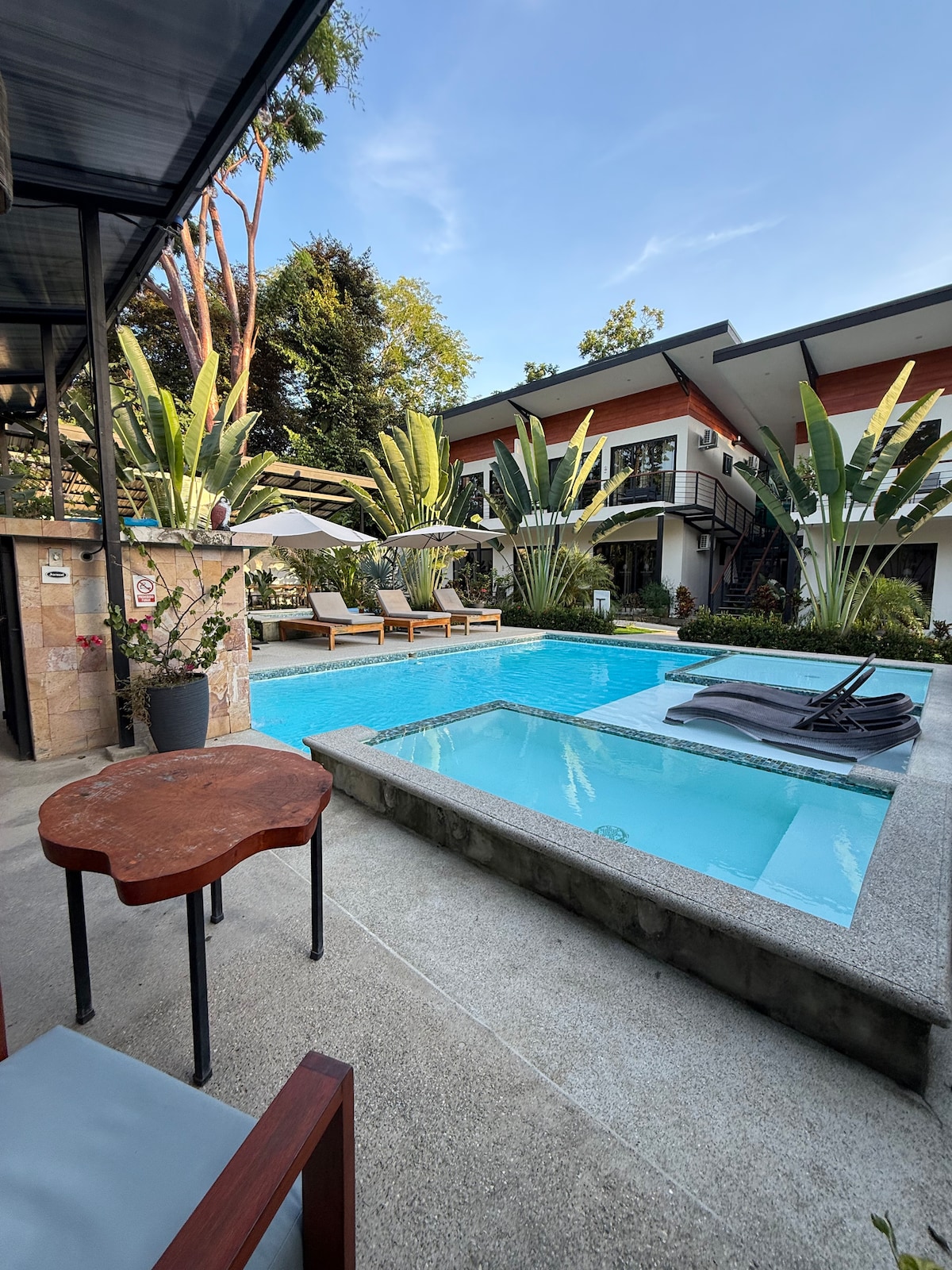 Experimente el lujo y la tranquilidad en Casa Bodhi, un elegante refugio con un diseño abierto que crea una integración perfecta entre el interior y el exterior. ¡A 5 minutos a pie de la playa! Esta residencia cuenta con puertas corredizas triples de vidrio de 2,7 metros de altura que amplían el espacio. Disfrute de comodidades modernas como AC, camas king size, piscina de agua salada y jacuzzi. ¡Despierte con los sonidos y las vistas de la selva, con monos aulladores, perezosos y otra fauna!