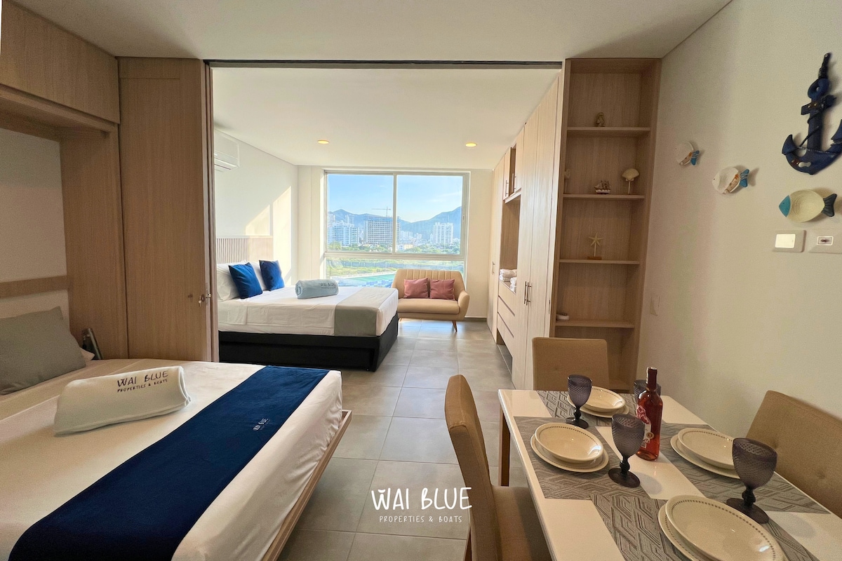 ¡Tu escapada perfecta a solo 300m de la playa! Disfruta de este moderno estudio, a solo 5 minutos en carro desde El Rodadero. Cuenta con: 🛏️ Habitación con cama King, Smart TV, aire acondicionado y cortinas opacas 🛋️ Sala de estar con puerta corrediza para mayor privacidad 🍽️ Cocina totalmente equipada para tu comodidad 🧺 Servicio de lavandería en el edificio disponible 🛒 Minimercado en el edificio con productos esenciales ¡Reserva ahora y disfruta de una gran experiencia!
