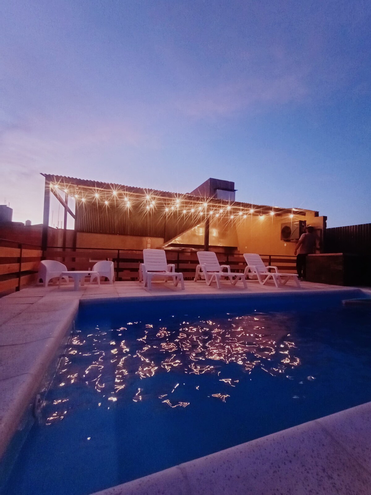 Aire acondicionado, Pava eléctrica, Vajillas completa, ropa de cama, microondas, heladera, acceso a quincho exterior, piscina climatizada con sistema solar