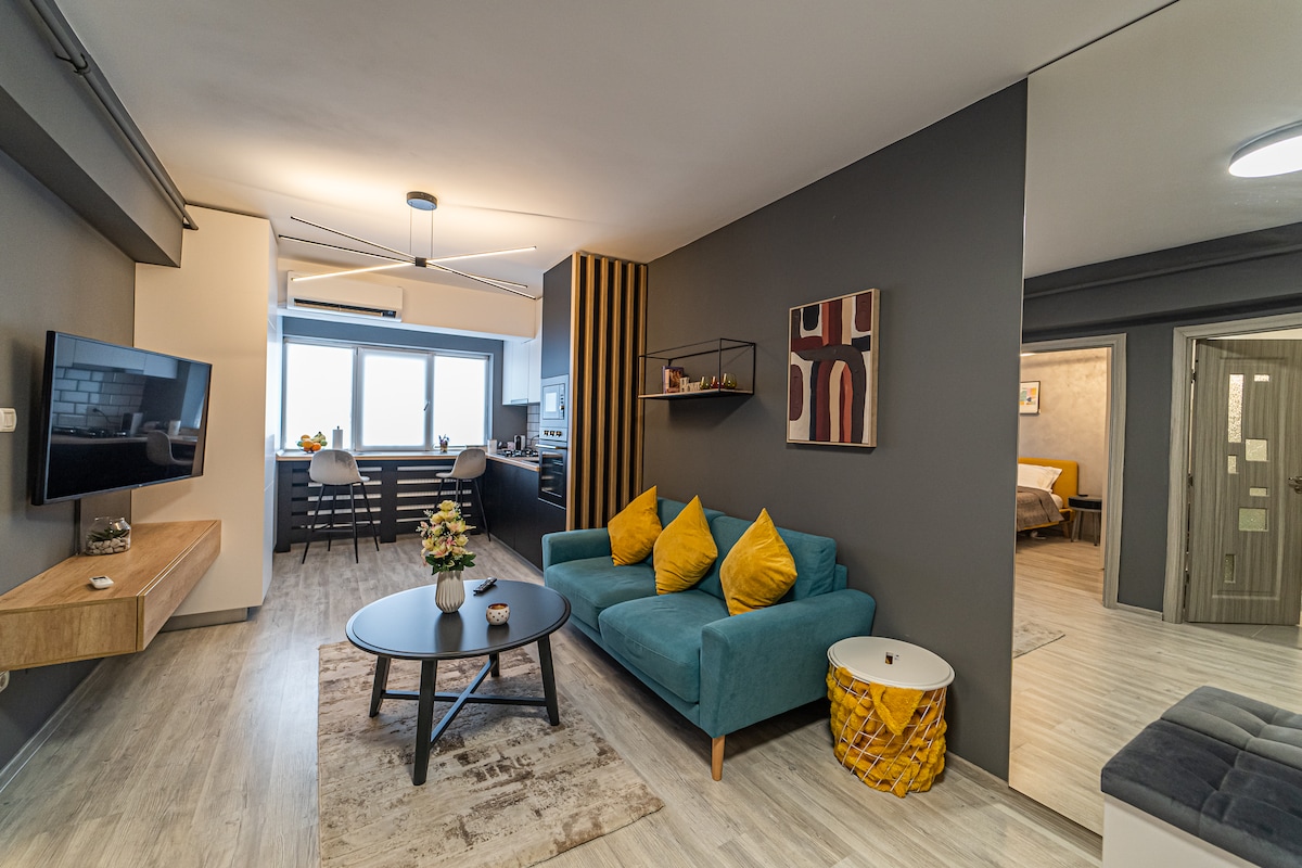 Nova • Tu refugio urbano en un complejo prémium Ubicación privilegiada: enclavada en una zona verde, abierta y tranquila con acceso rápido al centro de la ciudad, al aeropuerto y a las carreteras principales. A solo unos pasos, encontrarás supermercados, cafeterías acogedoras, gimnasios y elegantes restaurantes, todo lo que necesitas sin salir del vecindario. Diseño contemporáneo y máxima comodidad: un espacio luminoso y decorado con buen gusto, perfecto para relajarse o trabajar. Cada detalle ha sido cuidadosamente diseñado para tu comodidad.