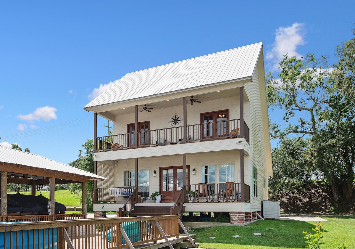Diseñado para cautivar, Sky View te atrae a su calidez con sus amplias habitaciones, detalles y vistas inigualables. Con un columpio de cama en el muelle, un balcón bien amueblado en la planta superior y un patio de gran tamaño, Sky View está destinado a atraerte al aire libre. Así que toma una bebida y encuentra tu lugar para relajarte. Ya sea el balcón de arriba o el columpio de la cama en el muelle, no hay mal asiento en la casa, especialmente cuando el sol se pone sobre el hermoso río False. Sky View está a 40 minutos del estadio LSU Tiger.
