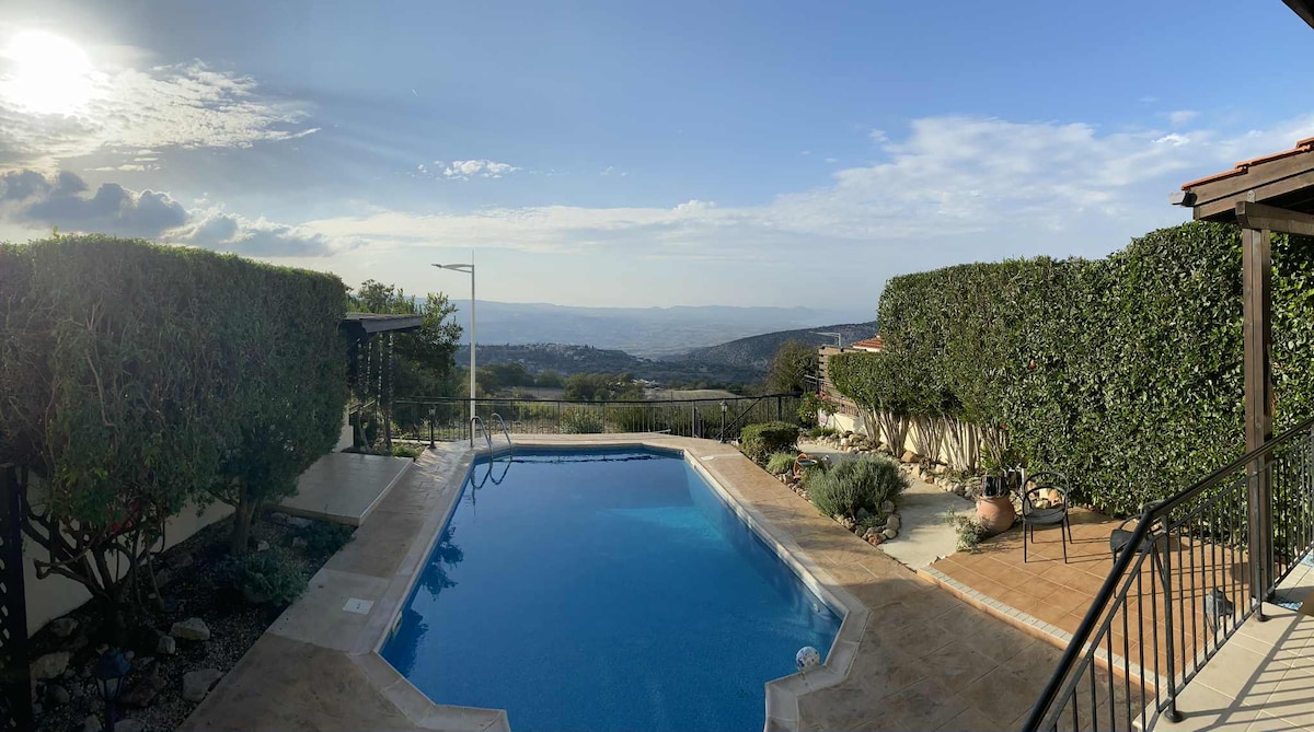 En las colinas al norte de Pafos hay una pintoresca comunidad muchas veces llamada el Beverly Hills de Chipre. Construida en la ladera de una colina del pueblo de Kamares, se encuentra mi villa, que consta de dos niveles. Vivo en el nivel superior y mis huéspedes en el nivel inferior, que consta de un dormitorio, salón, un baño completo y una pequeña cocina, y está rodeado por un hermoso jardín junto a la piscina privada. Este alojamiento independiente para mis huéspedes tiene entrada independiente y es totalmente privado.