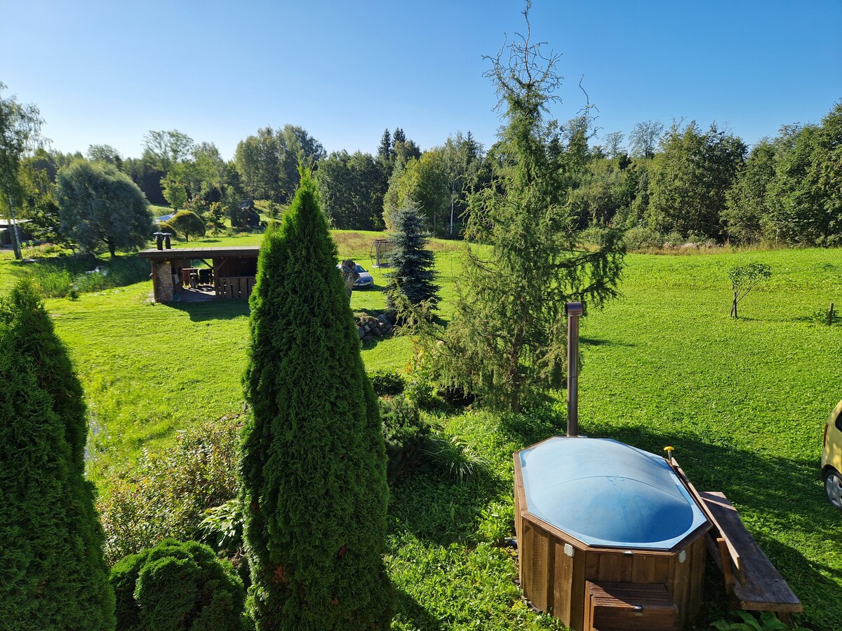 Una hermosa cabaña privada a 5 km de Tartu. La cabaña se encuentra a orillas de un pequeño estanque, en un bosque. La casa más cercana está a 0,5 km, por lo que es el lugar perfecto para una escapada. La cabaña cuenta con barbacoa privada, jacuzzi y un campo de disco volador para unas vacaciones activas. En la cabaña hay una sauna y un estanque para nadar o darse un chapuzón después de la sauna. Por la noche también puedes disfrutar de la chimenea que te mantendrá caliente en las noches frías. La bañera de hidromasaje no está incluida en el precio. Es un extra de 50,00 por la estancia.
