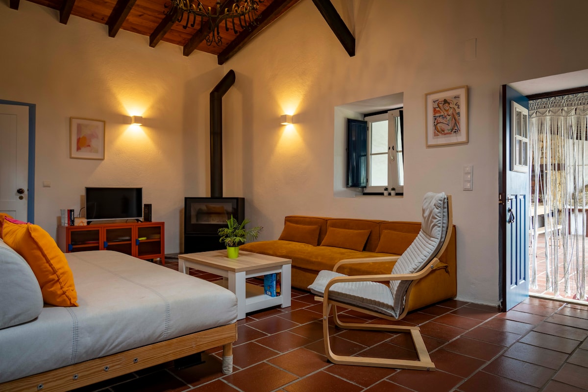 Casa de campo tranquila y aislada en las colinas de Sintra, ubicada dentro de una finca histórica privada que una vez fue el hogar de Sir Arthur Conan Doyle. Casa Bohemia ofrece privacidad absoluta, una sala de estar llena de luz con techo de vigas de madera y chimenea, un dormitorio tamaño queen con baño en suite y un patio privado con un baño de piedra antiguo para un baño romántico al aire libre. Jardín, terraza, estacionamiento y naturaleza a tu alrededor.