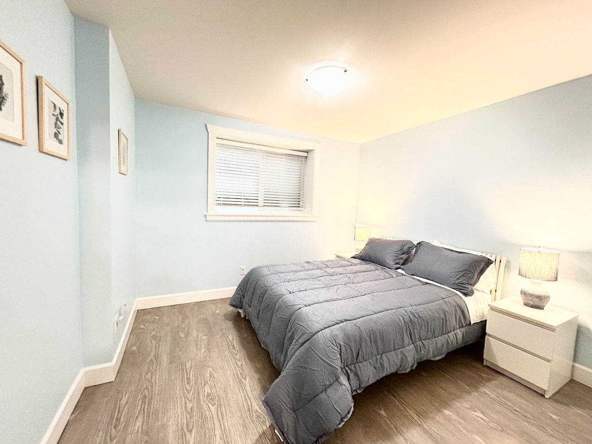 Suite de invitados recién renovada: buena para 2 personas. 1B1B privado y sala de estar y cocina y entrada privada. A 8 minutos caminando de la estación 22. Son solo dos paradas de SkyTrain desde la estación 22 de SkyTrain hasta Metrotown. Desde la estación de la calle 22, puedes ir directamente al centro de Vancouver sin transferirte a otra línea SkyTrain. 1 cama tamaño queen, inodoro inteligente, cocina completa, lavadora y secadora. Estacionamiento gratuito. Elegir nuestro lugar te garantiza la mejor experiencia de alojamiento.