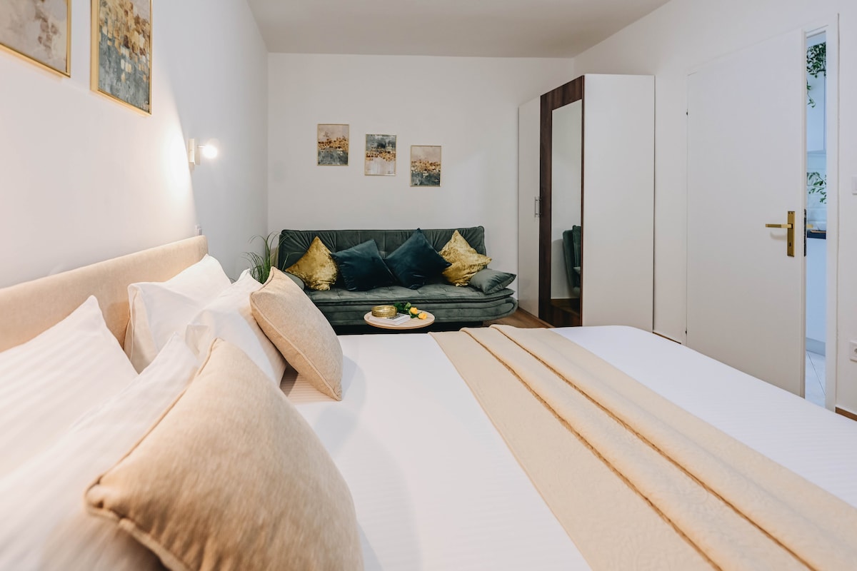 Descubre la serenidad en nuestro encantador apartamento de un dormitorio ubicado en el corazón de Porec. Sumérgete en la tranquilidad de un exuberante jardín adornado con flores vibrantes y olivos, mientras disfrutas de la comodidad de estar en el centro de la ciudad y a solo 5 minutos a pie de la playa. Tu estancia se completa con todas las comodidades modernas e incluso te proporcionamos dos bicicletas para que explores sin esfuerzo los alrededores. ¡Te damos la bienvenida a tu refugio perfecto!