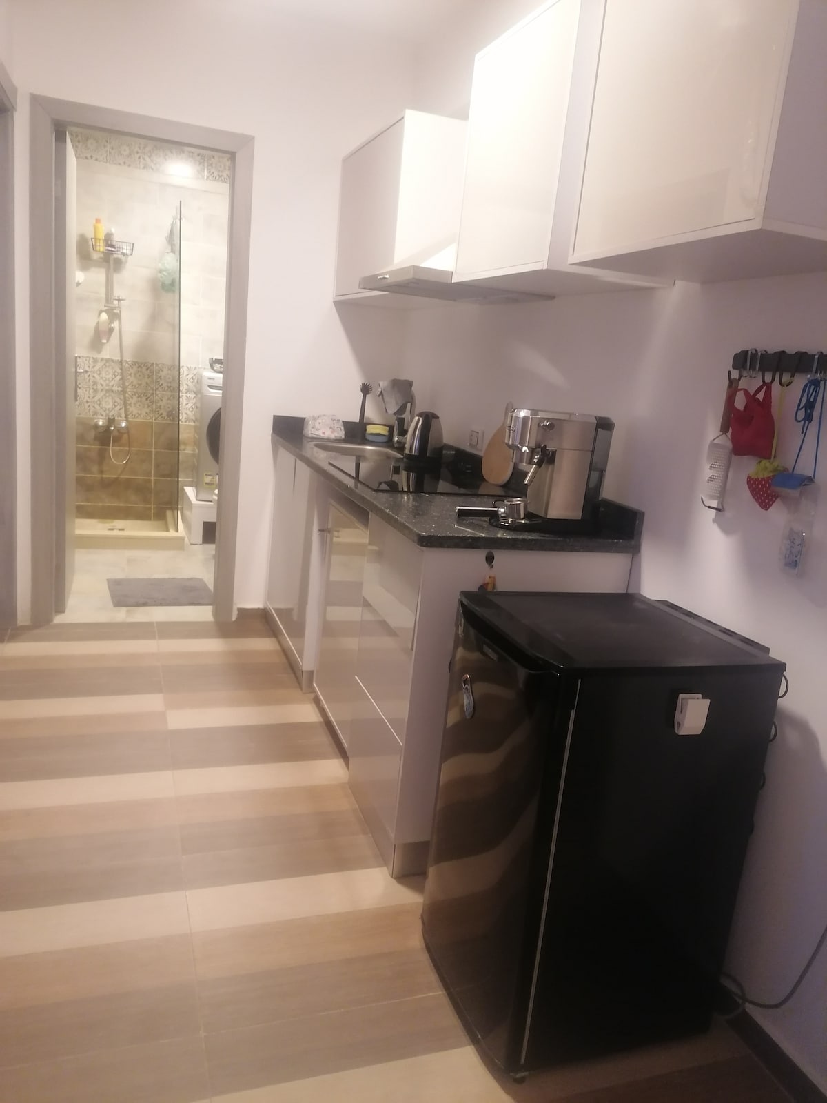 Moderno apartamento de un dormitorio en una ubicación privilegiada de Marsa Alam. A solo 2 minutos de mercados, supermercados, farmacias y tiendas, y a solo 5 minutos de la playa. Cuenta con balcón con vista al mar, muebles modernos, TV inteligente, aire acondicionado, un dormitorio y un sofá cama. Cocina totalmente equipada con horno, estufa de inducción, hervidor y licuadora de mano. Piscina en la planta baja, actividades de buceo y barco de cristal disponibles. Acceso a la playa por 4 €/día.