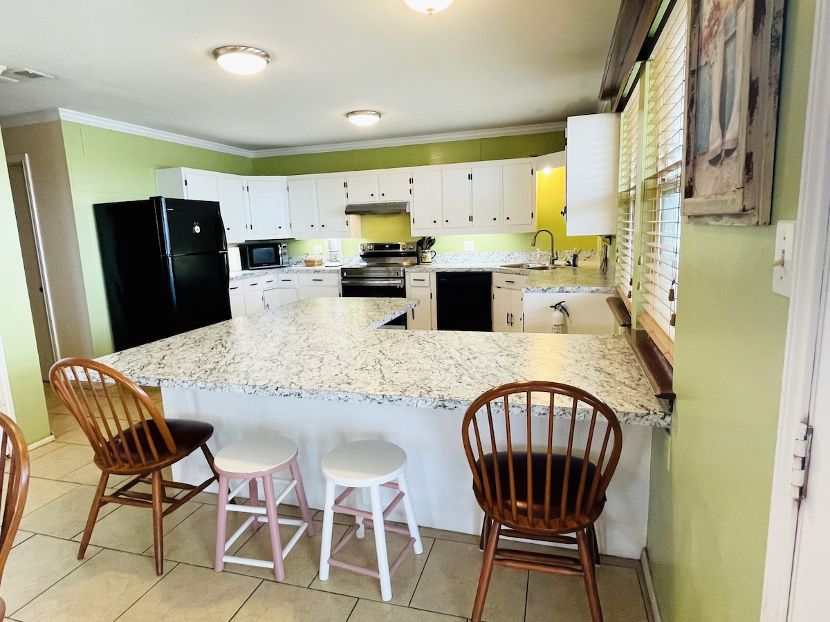 ¡Bienvenido a tu escapada perfecta en Port Mansfield, Texas, uno de los mejores lugares de pesca del mundo! Esta propiedad completamente vallada ofrece privacidad y seguridad. Capacidad para 8 personas en 4 dormitorios y 4 baños en la casa principal y la casa de la piscina privada. Disfruta de una cocina moderna, camas tamaño king con televisores de 65", un televisor de 98" en la sala de estar principal, un acogedor rincón de lectura, piscina privada, patios, comedor al aire libre y un jardín de mariposas para relajarte.