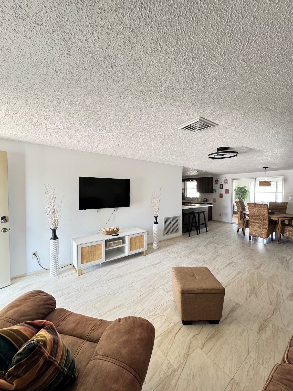 ¡Bienvenido a tu escapada perfecta! Relájate y desconecta en este alojamiento de dos dormitorios y dos baños bellamente decorado, diseñado para la comodidad y la conveniencia. Ya sea que viajes con familiares o amigos, te encantará el diseño espacioso y las comodidades cuidadosas. Pantalla en piscina climatizada. Espacios abiertos. Las áreas de estar y comedor están diseñadas para reunirse con cómodos asientos y un ambiente acogedor. Dos baños completos Cocina totalmente equipada. Wifi de alta velocidad Lavadora y secadora 3 televisores inteligentes