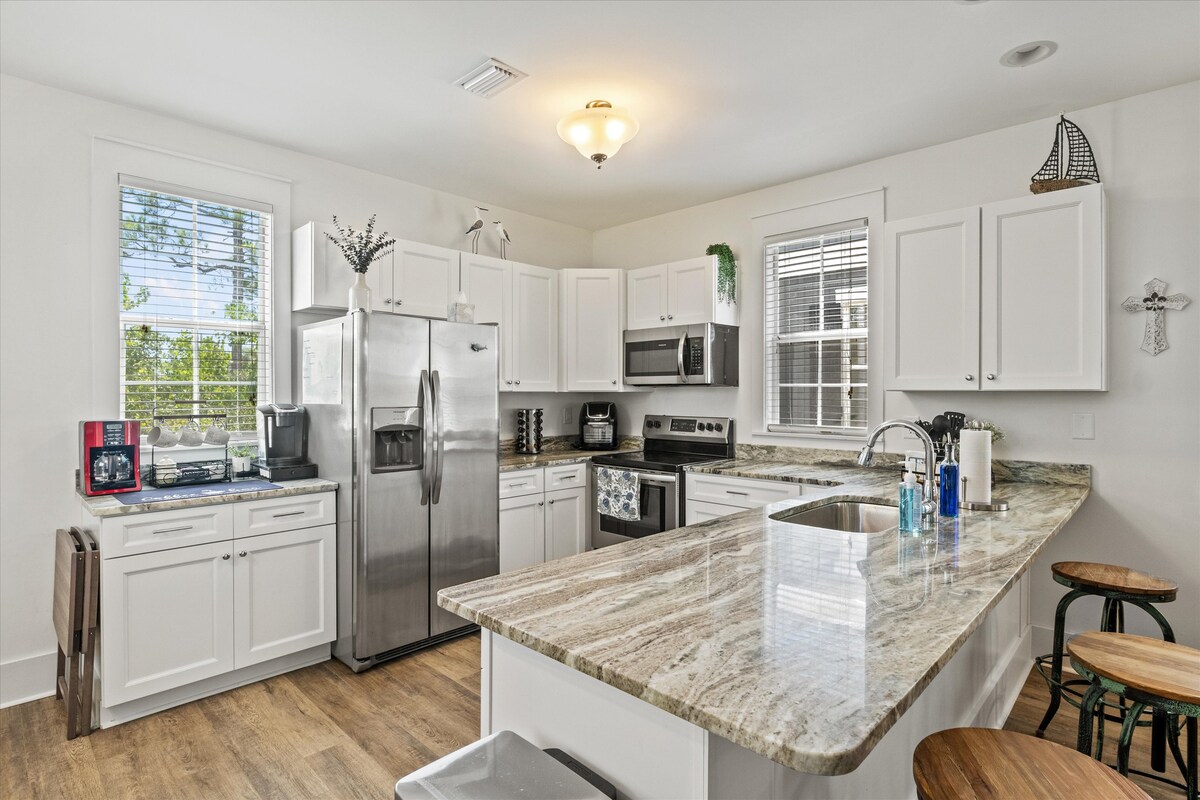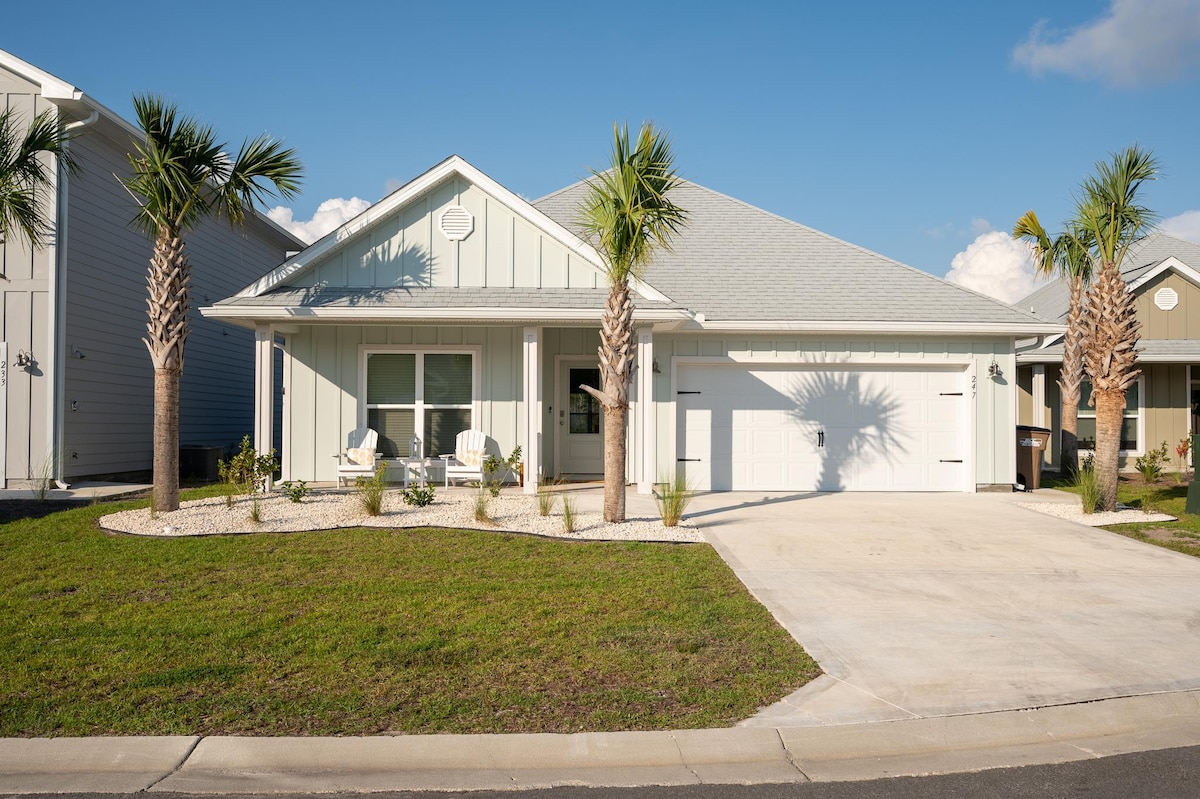 Bienvenido a Nash in the Sand. Tu alojamiento de lujo en la playa en Windmark Beach. Esta casa de lujo de nueva construcción tiene todo lo que necesitas para pasar unas vacaciones increíbles en la playa. Ubicada a poca distancia a pie o en carrito de golf de la PLAYA. Esta casa unifamiliar ofrece lujo costero con 4 amplios dormitorios, 2 baños, cocina totalmente equipada, lavandería, porches delanteros y traseros. El suelo es de LVP, encimeras de cuarzo, electrodomésticos de acero inoxidable, sábanas y almohadas de lujo.