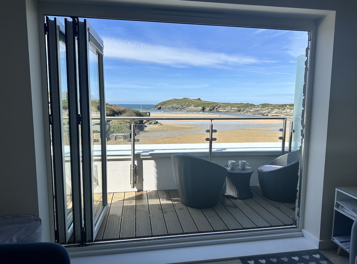 Balcón con vista al mar / A poca distancia a pie de Porth Beach / Estacionamiento