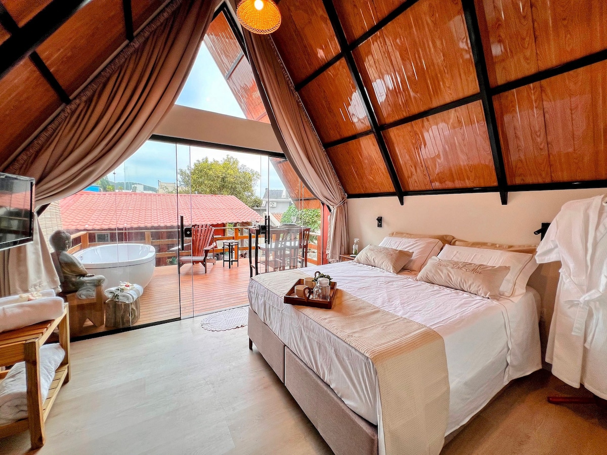 ¿Quieres sorprender a tu amor? Loft romántico para parejas con jacuzzi en la playa Mariscal, en Bombinhas/SC. Ofrecemos experiencias románticas adicionales (canasta de desayuno, sorpresa romántica con fondue, sesión de cine al aire libre, etc.). Consulta con el anfitrión. ¡Reserva ahora y haz de este viaje un momento único e inolvidable! 💘 Lofts Mariscal @loftsmariscal Diseñado para Casal 💞