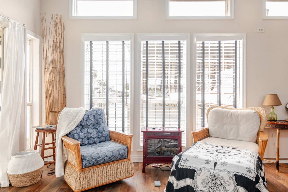 Bienvenido a bordo de FLOHOM 4, una elegante casa flotante de lujo con diseño urbano moderno atracada en National Harbor Marina, en el prestigioso paseo marítimo de National Harbor. FLOHOM 4 cuenta con vistas espectaculares del barrio y del río Potomac y ofrece fácil acceso a restaurantes y entretenimiento de clase mundial. Desde amaneceres tranquilos hasta impresionantes puestas de sol y el ambiente tranquilo del paseo marítimo, tu estancia promete una escapada inolvidable llena de relajación, exploración y una conexión más profunda con el agua.
