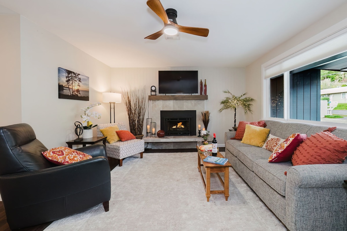 Escápate a esta casa de campo actualizada de Poulsbo con vistas panorámicas a Liberty Bay. Perfecto para parejas y familias, este acogedor y limpio refugio de inspiración nórdica ofrece una cocina moderna, camas lujosas y una luminosa sala de estar con televisores inteligentes y wifi. Disfruta del café y de los amaneceres con vistas a la bahía. Conduce 5 minutos hasta las panaderías nórdicas, las tiendas y el puerto deportivo del centro de la ciudad. Practica kayak en la bahía, camina por la península de Kitsap o toma el ferry a Seattle (30 minutos). Registro de entrada autónomo, lavadora/secadora incluidas. No se puede fumar; se aceptan mascotas. ¡Reserva tu escapada serena!