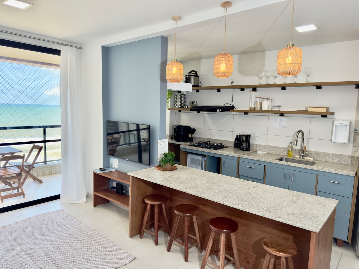 🌊 ¡Frente a la playa con vista al mar! ☀️ Apartamento exclusivo en la comunidad cerrada Costa Azul, en Praia do Sul. Acceso a la playa directamente desde el condominio. Acceso exclusivo y directo a la playa (justo en la arena). - Impresionante vista del mar. - Ideal para familias/amigos. - Portero las 24 horas y estacionamiento privado para 1 auto. - Aire acondicionado en ambas habitaciones. Barrio tranquilo, cerca de mercados y restaurantes. Fácil acceso: a 1 km del aeropuerto, a 5 km del centro de la ciudad. ¡Tu escapada junto al mar te espera!