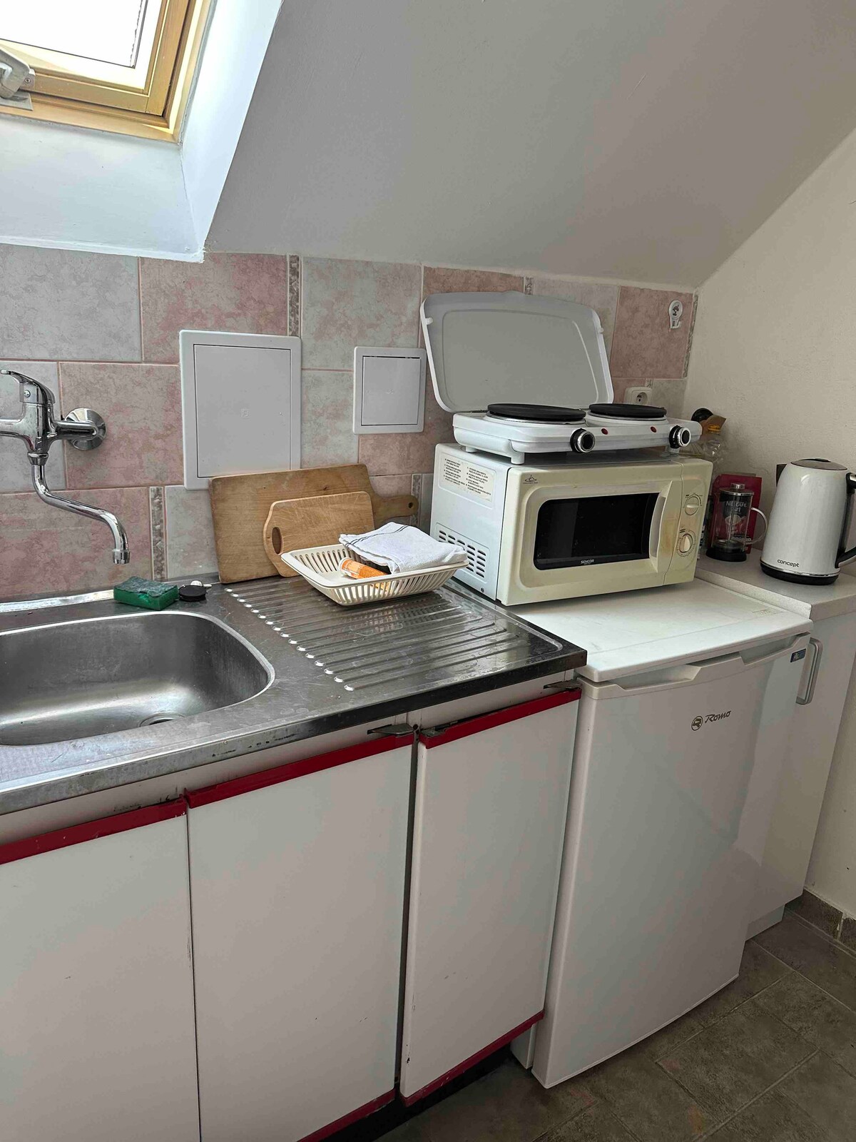Nuestro alojamiento está situado en una zona tranquila del pueblo de Starovice. Está rodeado de bodegas, donde los enólogos locales estarán encantados de darle la bienvenida e invitarle a degustar los excelentes vinos de Moravia. El interior del edificio ha sido recientemente renovado y ofrece un equipamiento moderno. La excepción es el baño original, que pronto será renovado. Le ofrecemos una cómoda cama de matrimonio, que se puede separar de la cama individual con un elegante biombo para su privacidad. Nuestro alojamiento es adecuado para un máximo de 4 personas con una cama supletoria y un colchón de calidad.