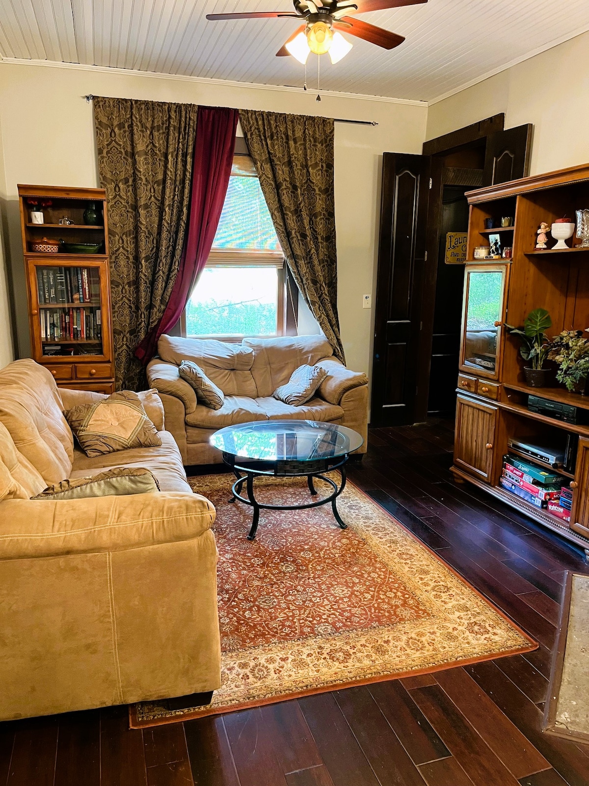 Bienvenido a casa a la tranquilidad de la vida suburbana. El alojamiento está ubicado en un lote de un acre con árboles maduros. Esta casa de dos dormitorios se renovó completamente en 2021. Se trata de un alojamiento de concepto abierto donde puedes socializar con otros mientras cocinas y cenas. Tiene una cocina en la que realmente puedes cocinar, con mucho espacio en el mostrador y utensilios de cocina. ¡Disfruta del hermoso clima desde el porche delantero cubierto!
