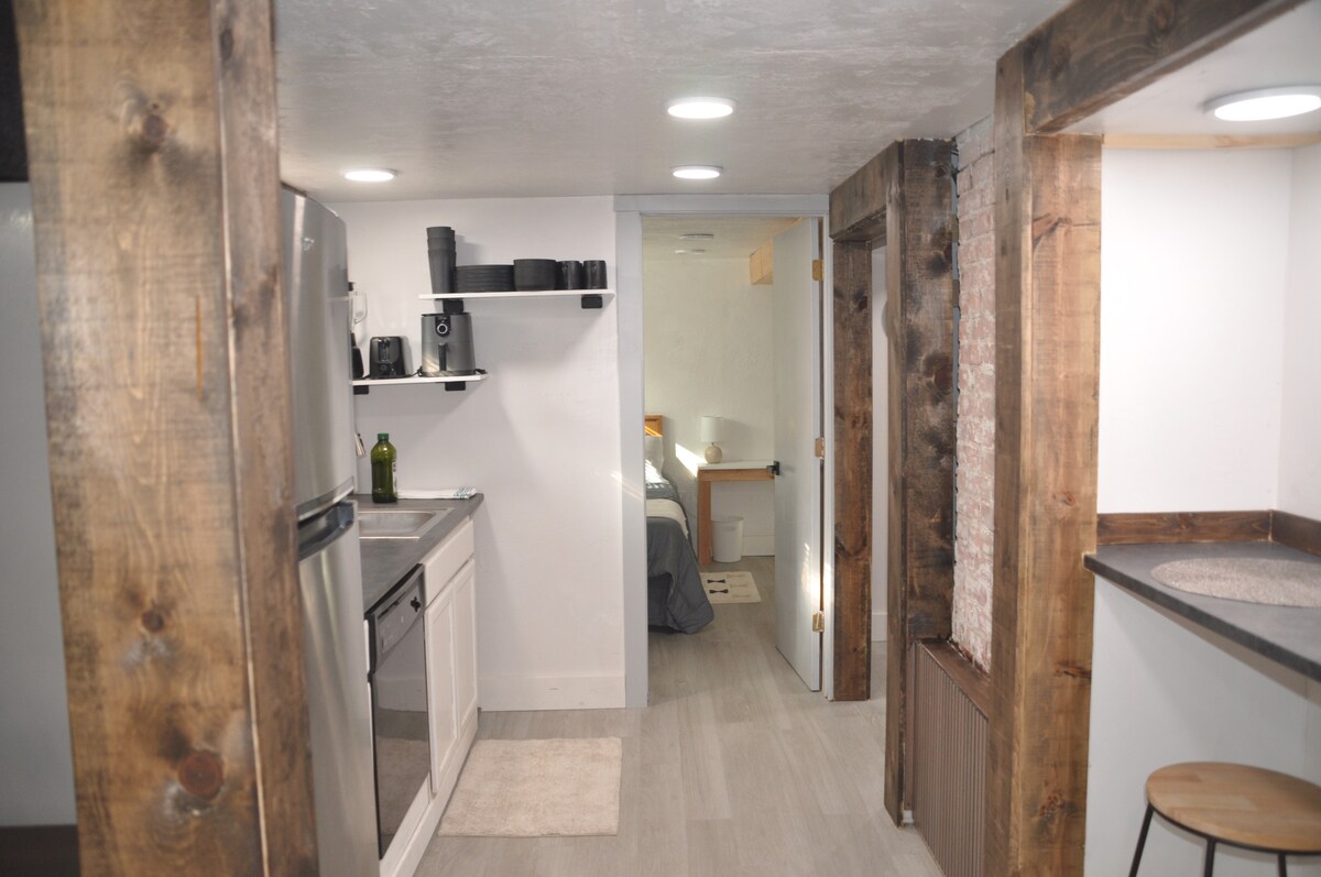 ¡Disfruta de mi elegante y acogedor dúplex que acabo de remodelar! Este es el nivel del sótano inferior. Tienes un pequeño bar con encimera de granito, microondas, mininevera y cafetera Keurig. Sala de estar con TV inteligente. ¡Ducha a ras de suelo e internet de alta velocidad! Ideal para una persona sola o una pareja que no planea cocinar. Ubicado en el casco antiguo de Pocatello, junto al sistema de senderos de City Creek. ¡Ideal para hacer senderismo y ciclismo! ¡LEE la descripción COMPLETA y las NORMAS DE LA CASA antes de reservar para que tu estancia sea un éxito!