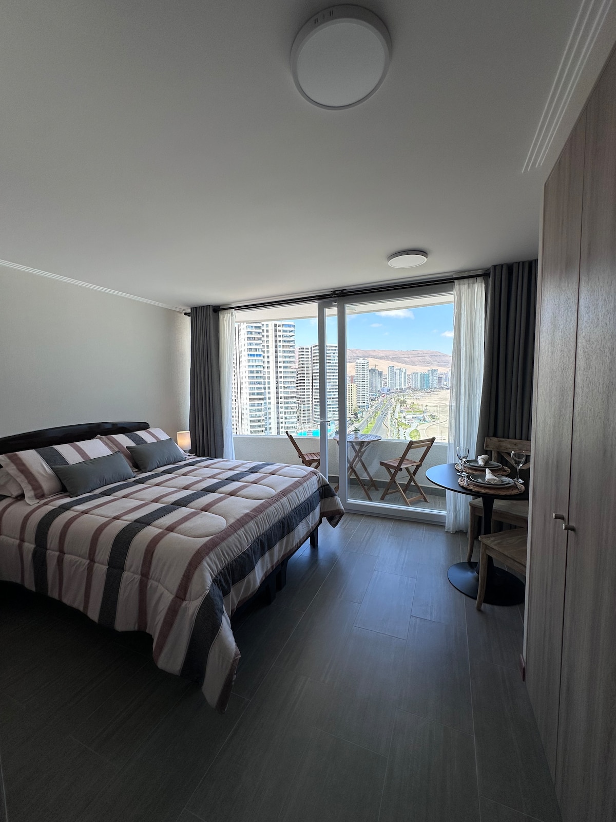 Disfruta una estadía única en este departamento tipo estudio completamente equipado ubicado en península de Iquique. Cuenta con una impresionante vista hacia Playa Brava y además se encuentra a pasos de Playa Cavancha y de los principales atractivos turísticos de la ciudad. Este acogedor espacio combina comodidad, diseño y una vista espectacular que te permitirá despertar mirando el océano. Estacionamiento privado disponible sin costo adicional hasta 31 de marzo de 2026.
