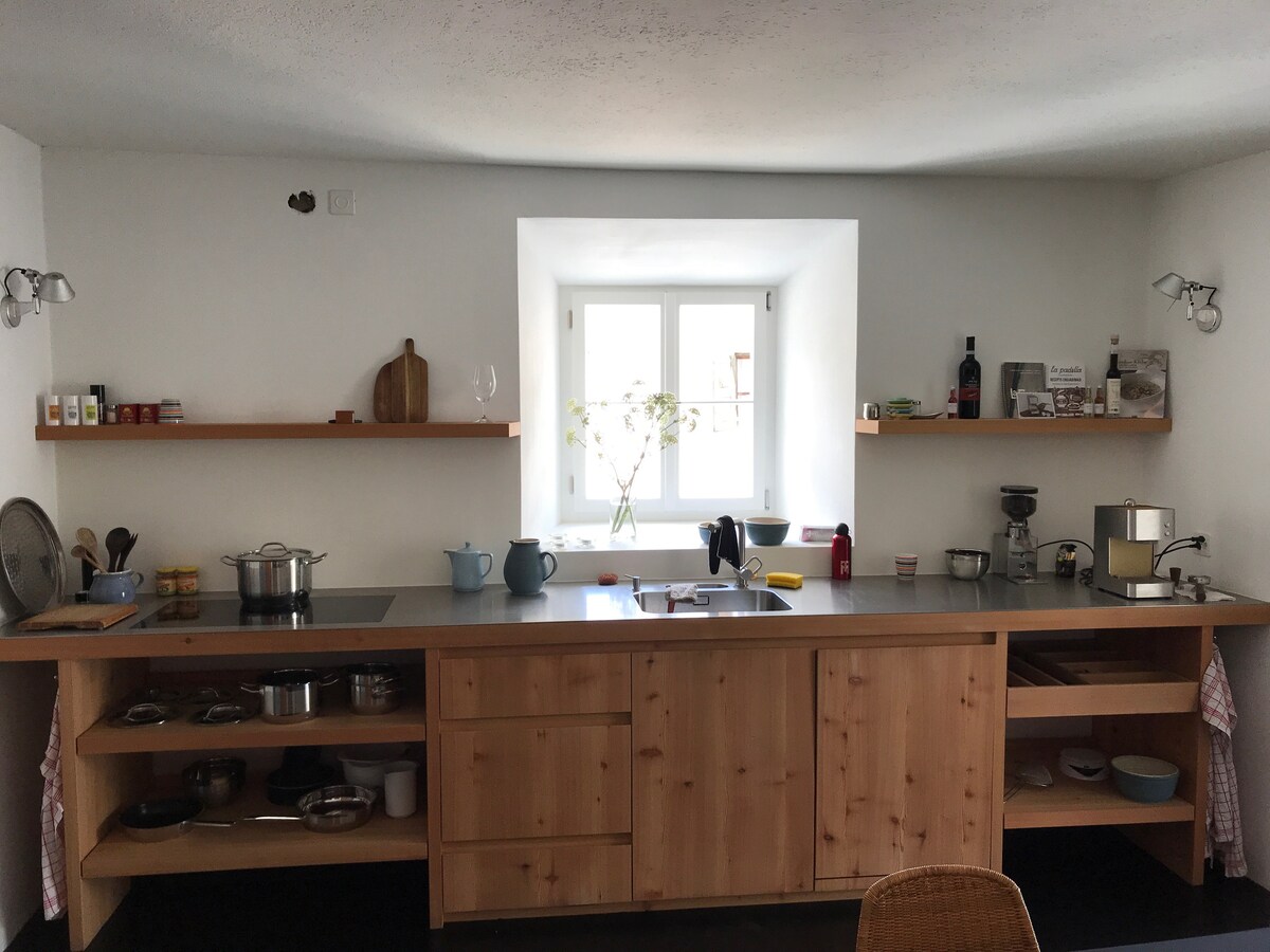 Ático recién reformado en 2020 en una granja, en las afueras de Ramosch. Tranquilo y soleado, con vistas a las montañas de la Baja Engadina. La tienda del pueblo y la parada de autobús están a 5-10 minutos a pie. En verano se pueden hacer numerosas caminatas y excursiones en bicicleta desde el apartamento. Varias posibilidades de baño en la región. Se puede llegar a los ferrocarriles de montaña en 15 minutos en coche o en autobús. Pista de esquí de fondo desde Ramosch. Pista de trineo hasta la puerta de la casa.
