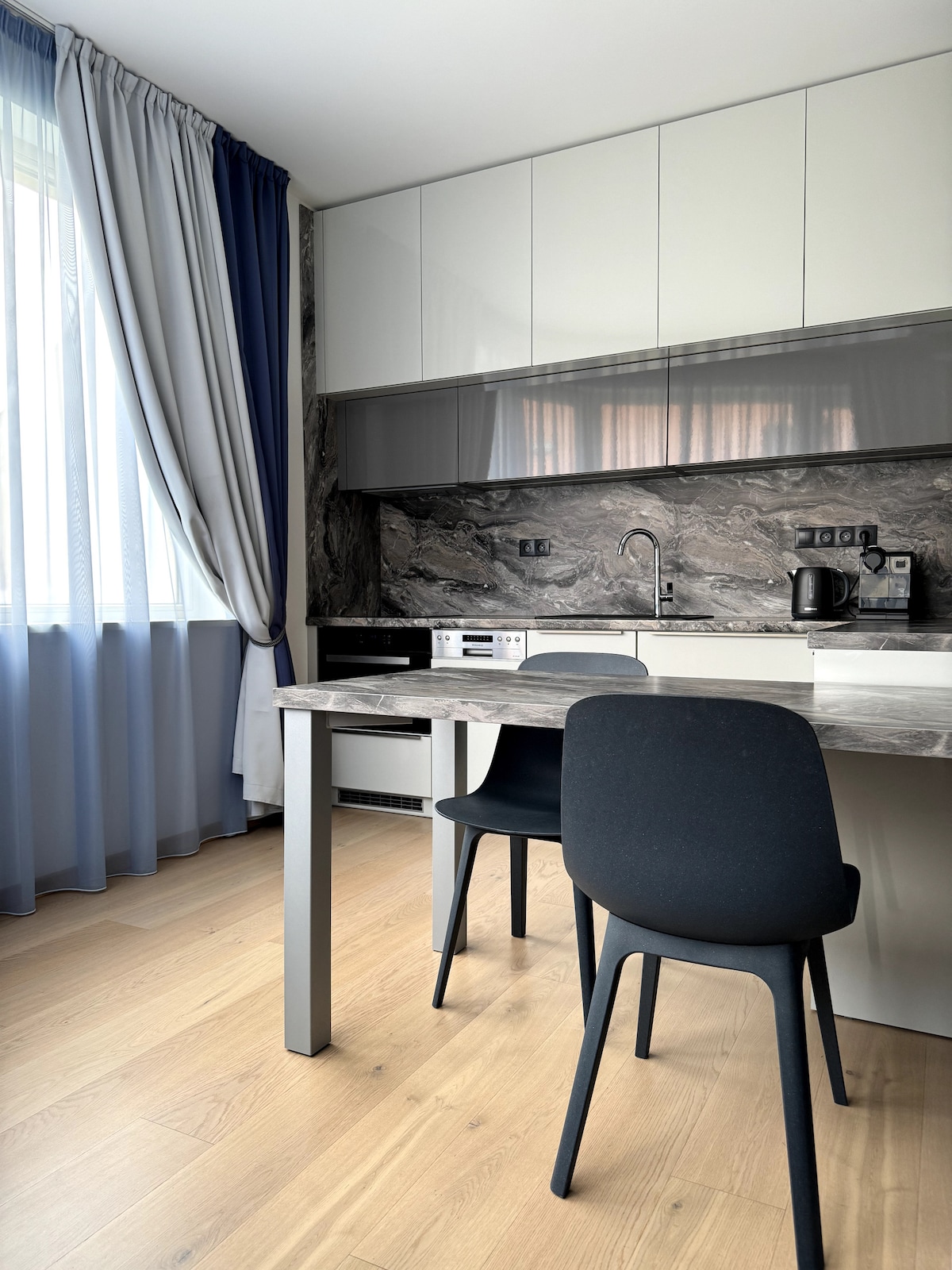 Si estás viajando solo, este apartamento es justo lo que estás buscando. Es un apartamento compacto, pero cómodo y luminoso de un dormitorio con muebles de madera y una ventana francesa. El apartamento tiene una unidad de almacenamiento, una gran TV en la pared y una cocina totalmente equipada. (La cocina se comparte con otros 3 apartamentos). El diseño del baño es minimalista, pero resumido, con colores cálidos y azulejos grandes. También puedes pasar tiempo en el balcón, que forma parte de los espacios compartidos.