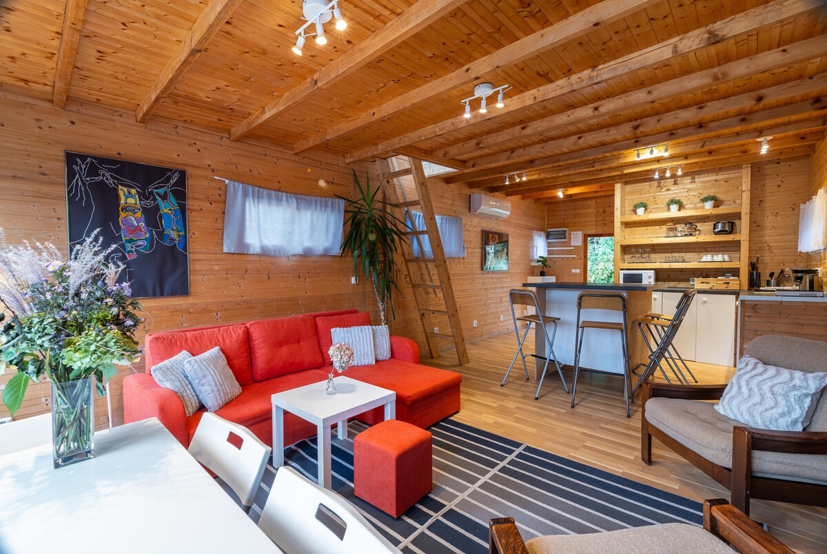 MINICASA MOSAICO: un RETIRO artístico de bienestar de 40 m² hecho de materiales ecológicos y reciclados (madera, mosaico). DISEÑO artesanal: espacio para el descanso, el equilibrio y la regeneración. Baño de guijarros, acogedor rincón de lectura, árboles alrededor para PRIVACIDAD y calma. A solo 2 km de Praga, cerca del aeropuerto, pero en la vegetación. JARDÍN, parrilla, bosques, estanques, senderismo y rutas en bicicleta. Cervecería a 100 m, estacionamiento gratuito. JACUZZI o SAUNA finlandesa por un cargo adicional. ¡UNA ESTANCIA DE BIENESTAR CON ATMÓSFERA ARTÍSTICA!