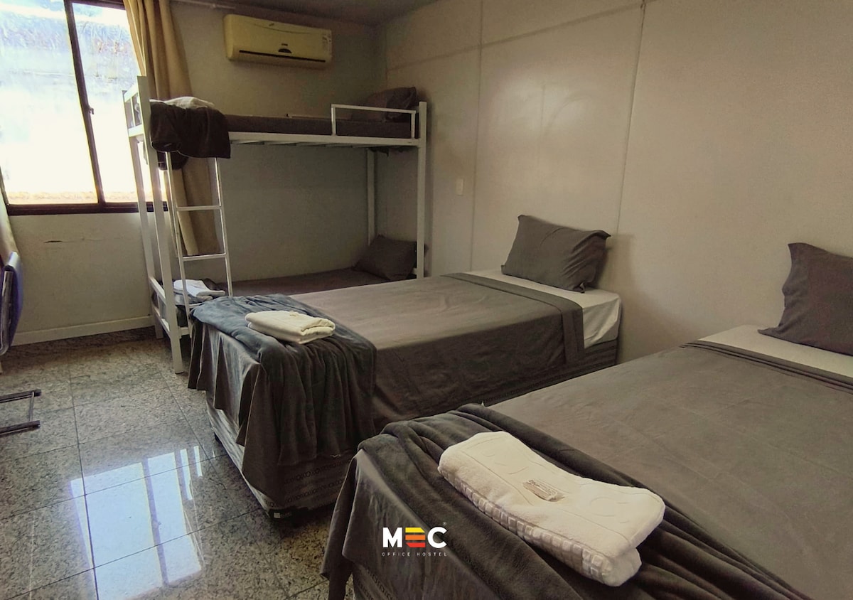 Cama en una habitación compartida mixta para 15 personas. La habitación tiene una cerradura electrónica, armario individual, ventilador y aire acondicionado (de 10:00 p. m. a 8:00 a. m.). El baño es privado, dentro del dormitorio. Incluye la ropa de cama y wifi. También hay una cocina compartida disponible para uso de los huéspedes. Estación diaria más un 3% en la tarifa de servicio, que se pagará al momento del check-in.