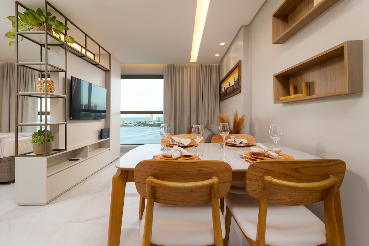 Piso decorado y construido pensando en los más mínimos detalles para que el huésped tenga una excelente estancia. Nuestro espacio cuenta con todos los elementos necesarios para su comodidad, desde microondas, minibar, cafetera, Smartv con Netflix, Internet Wi-Fi 240 Mega. Estamos ubicados en Av Boa viagem (Beira Mar), la región más valorada de Recife. Está cerca del centro comercial RioMar, del mercado, a 5 km del centro médico, de restaurantes y bistrós con las cocinas más variadas. Aquí encontrarás lo mejor de Recife.