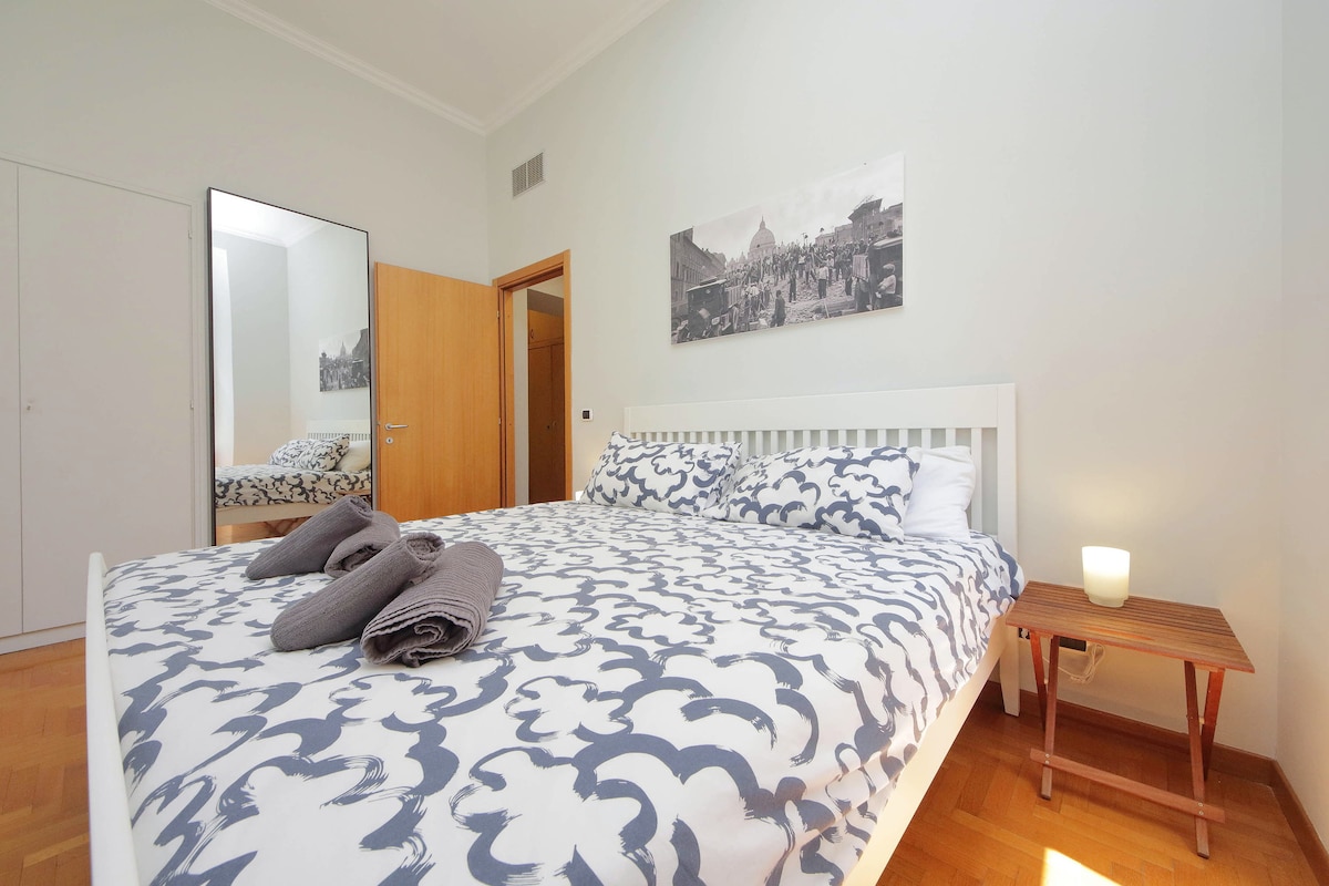 Apartamento finamente renovado en un edificio de época cerca del Vaticano, en el corazón del hermoso barrio de Prati. Ideal para visitar la Ciudad Eterna, tanto a pie, dada la proximidad a los principales lugares de interés histórico y cultural, como por medio del transporte, ampliamente presente en la zona (metro, tranvía, autobús). Adecuado para parejas, viajeros de negocios o familias con niños.