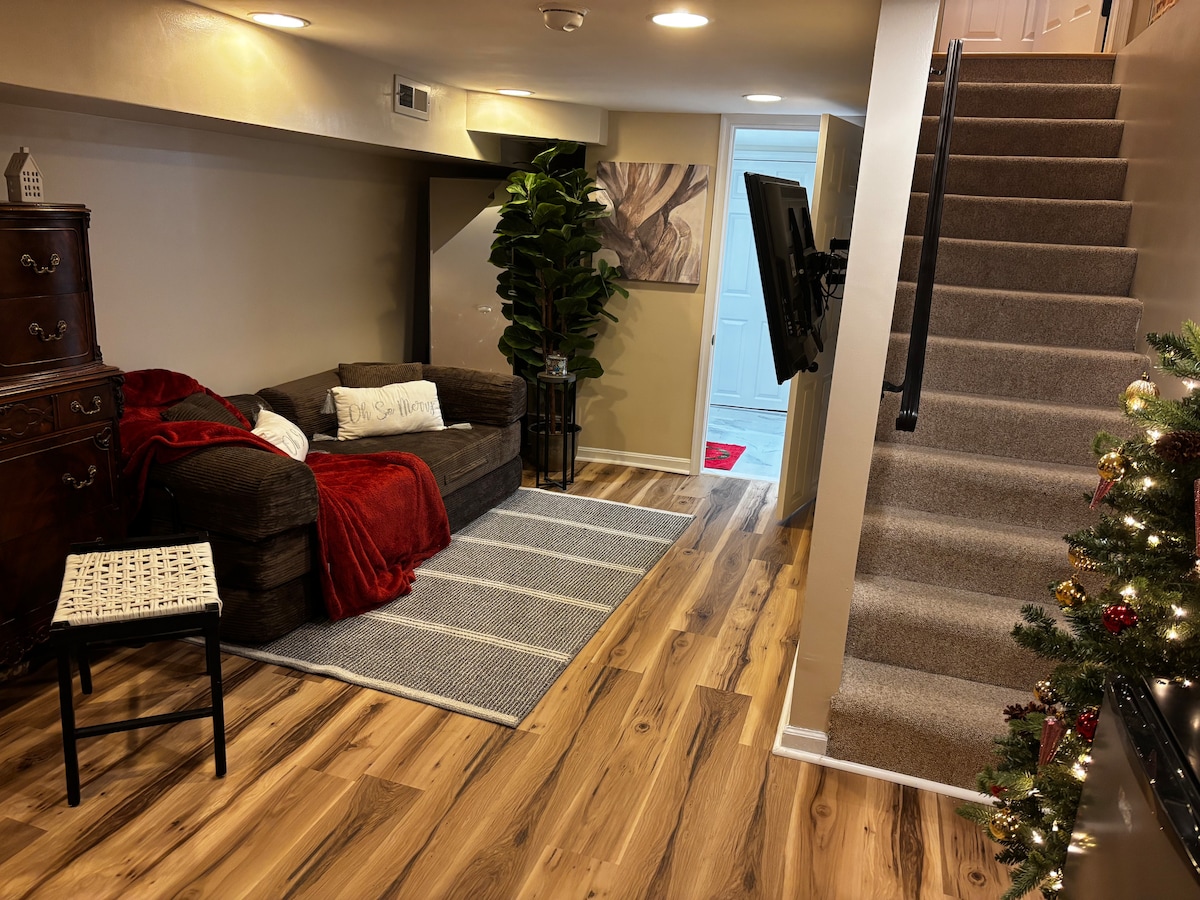 Room is upstairs (REAR on the RIGHT) 32" SmarTV (Peacock, PBS, Paramount+, Netflix, Amazon, Apple, Disney+, DirecTV & DVR), & bedroom Kuerig. Spa (kept at a maximum of 104 degrees year 'round)--required 48 hours advance notice for use. NO lock on bedroom/bathroom---doorstop provided. NO parking in parking spaces, park on Grand Bend Dr (straight portion only). NO shoes in the house; socks or slippers are welcome! NO eating in the bedroom.