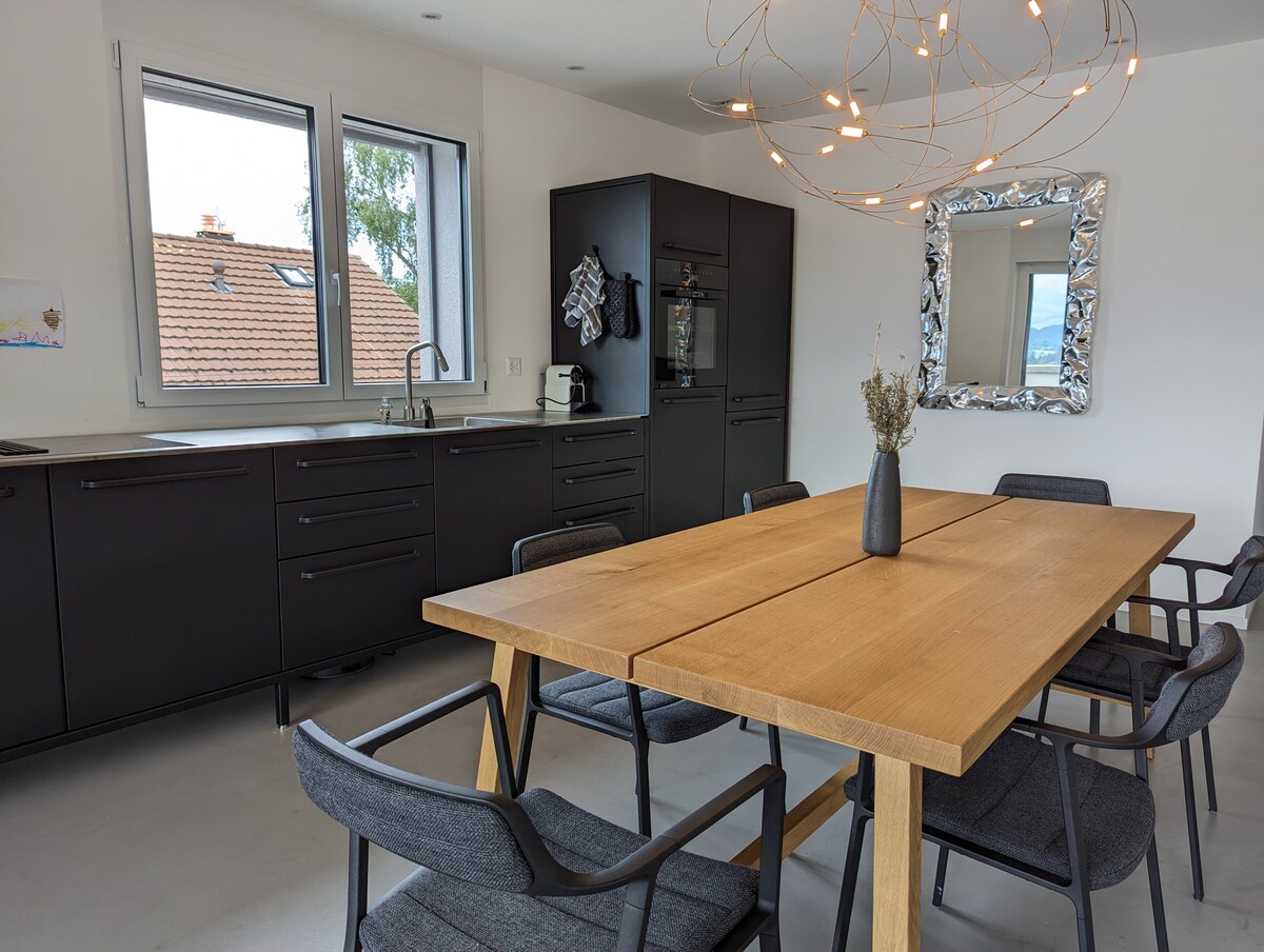 La construimos para nosotros con el corazón, esta pequeña casa. Se encuentra cerca de nuestra casa residencial, pero goza de vistas despejadas y respeta su privacidad. Se sentirá como en su hogar. Se sueña contemplando las vistas, el trayecto del sol, en una de las terrazas o junto al fuego. Para desconectar, descubrir la región de Gruyère, aislarse para teletrabajar, escaparse en pareja... Lo más difícil es irse.