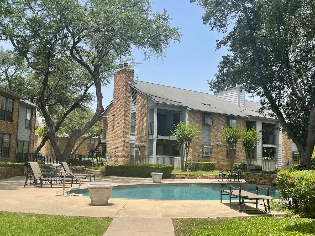 Apartamento en North Dallas: 1 dormitorio, 1 baño y vistas a la piscina