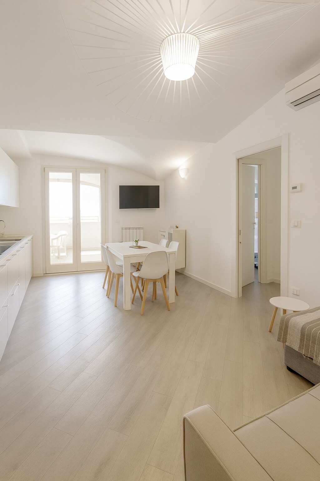 Despertarse con el sonido de las olas. Disfrutar del primer cappuccino con vistas al mar resplandeciente. Abrir tu propia puerta y caminar descalzo por la playa sin cruzar una calle. Con las colinas de Abruzzo a tus espaldas, podrás disfrutar de tus merecidas vacaciones en un apartamento único en Roseto degli Abruzzi, con dos amplias terrazas y un ambiente elegante y acogedor con todos los extras y, sobre todo, una cama de ensueño (Hästens).