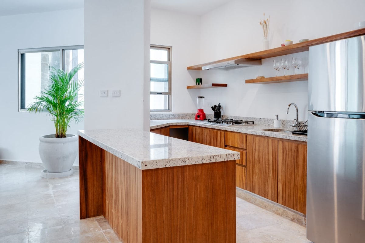En Casa Kuro, la arquitectura japonesa dialoga con la selva maya en un refugio de contemplación. Creación de Namus, desarrollador publicado en las más importantes revistas de arquitectura global como Architectural Digest, ArchDaily, Design Boom y en el libro "Lo Mejor de la Arquitectura Mexicana del Siglo XI", además de múltiples premios internacionales. Este depa en primer nivel es un templo para los amantes del arte: 2 recámaras, alberca privada, tina y vistas a la jungla.