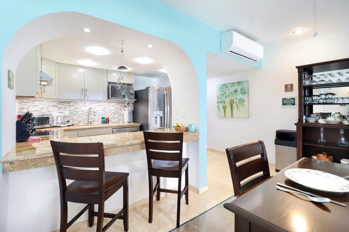 Disfruta esta escapada perfecta en nuestro amplio condominio de 2 Dorm., ubicado en el complejo cerrado de Pto Aventuras. A solo unos minutos en auto de Playa del Carmen y Tulum, este condo combina comodidad y estilo en una ubicación privilegiada cerca de la playa y la marina. Ya sea que busques aventura , tranquilidad frente al mar o momentos con tu familia , nuestro condo es la base ideal para tus vacaciones.